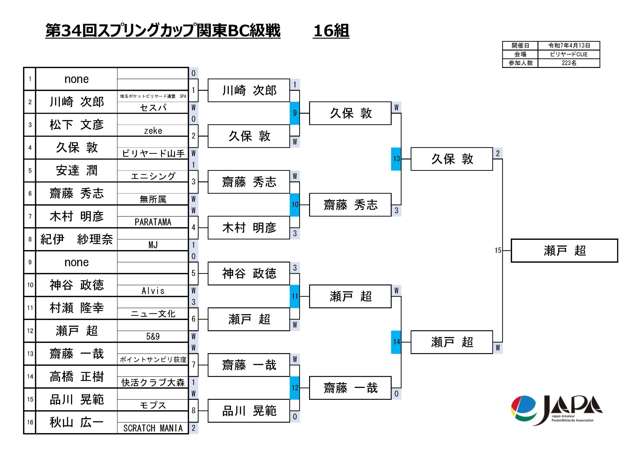 第34回 スプリングカップ 関東BC級、出場選手一覧