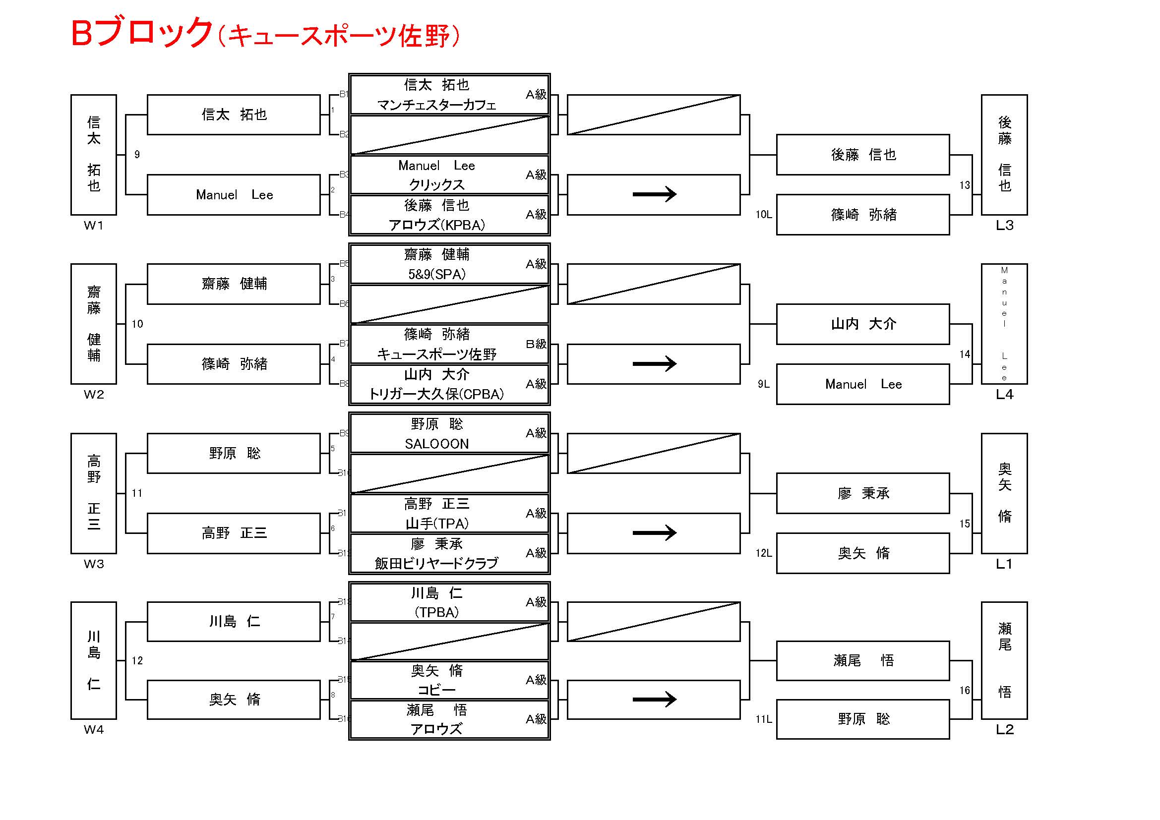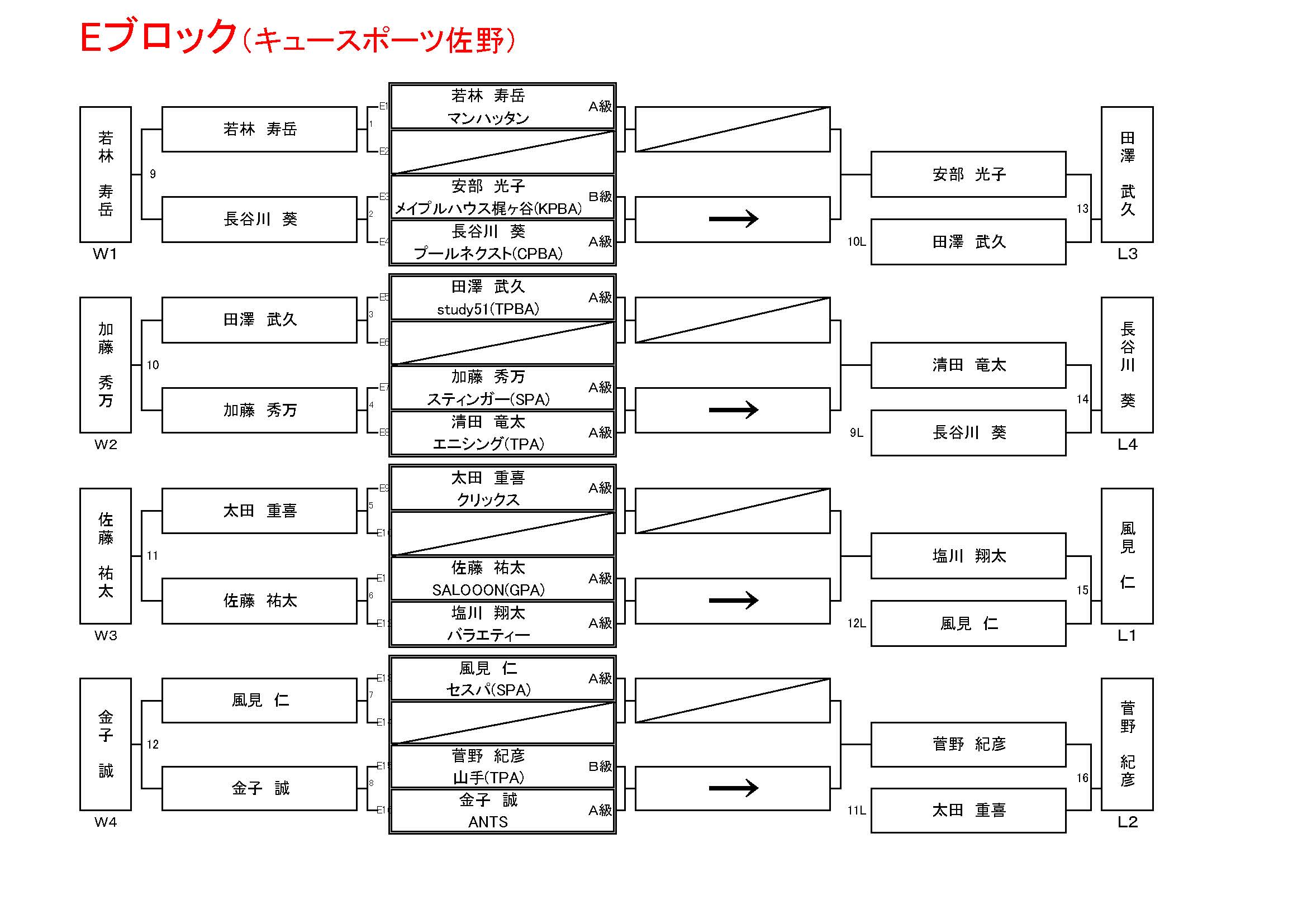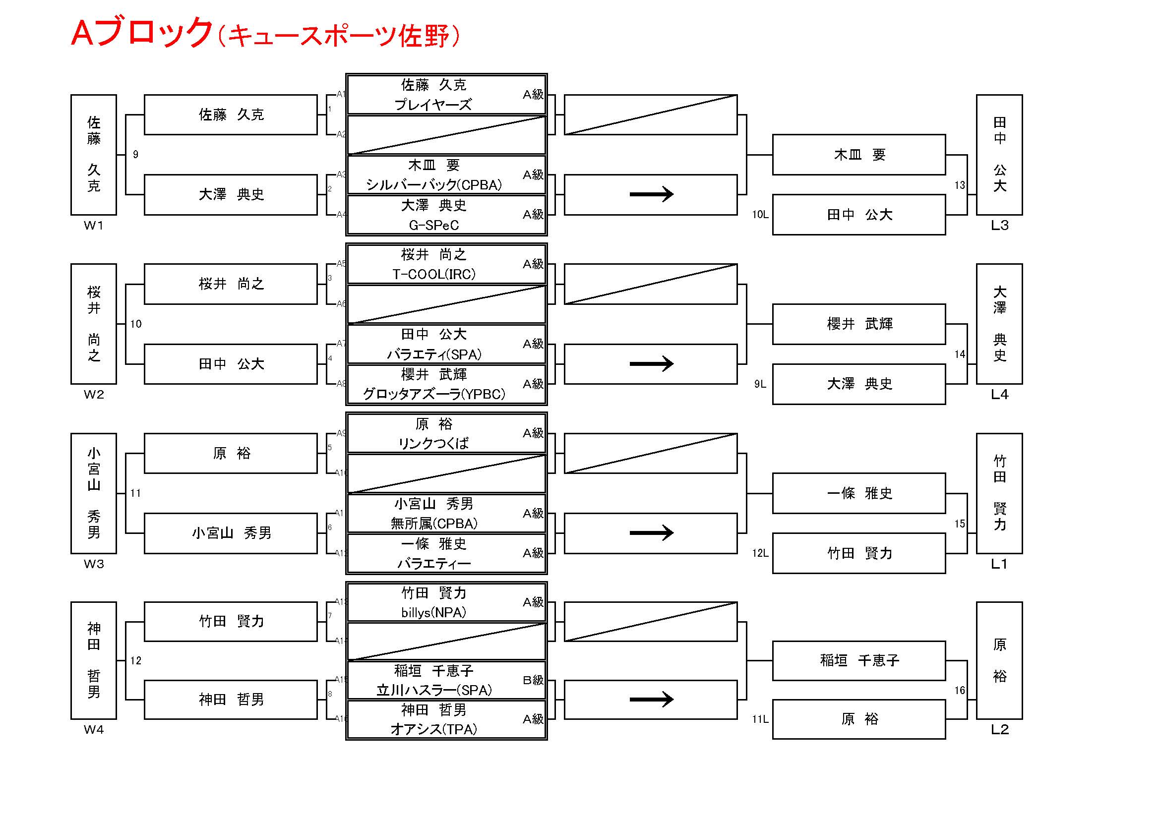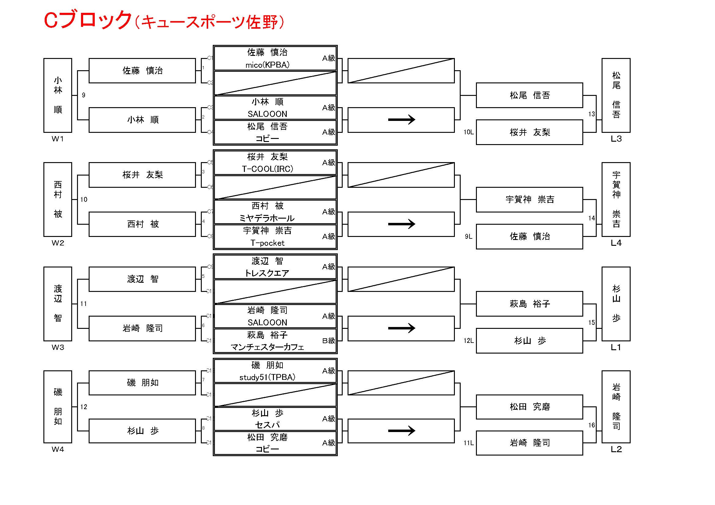 試合方法:ナインボール (A級5rack、B級4rack、C級3rack)