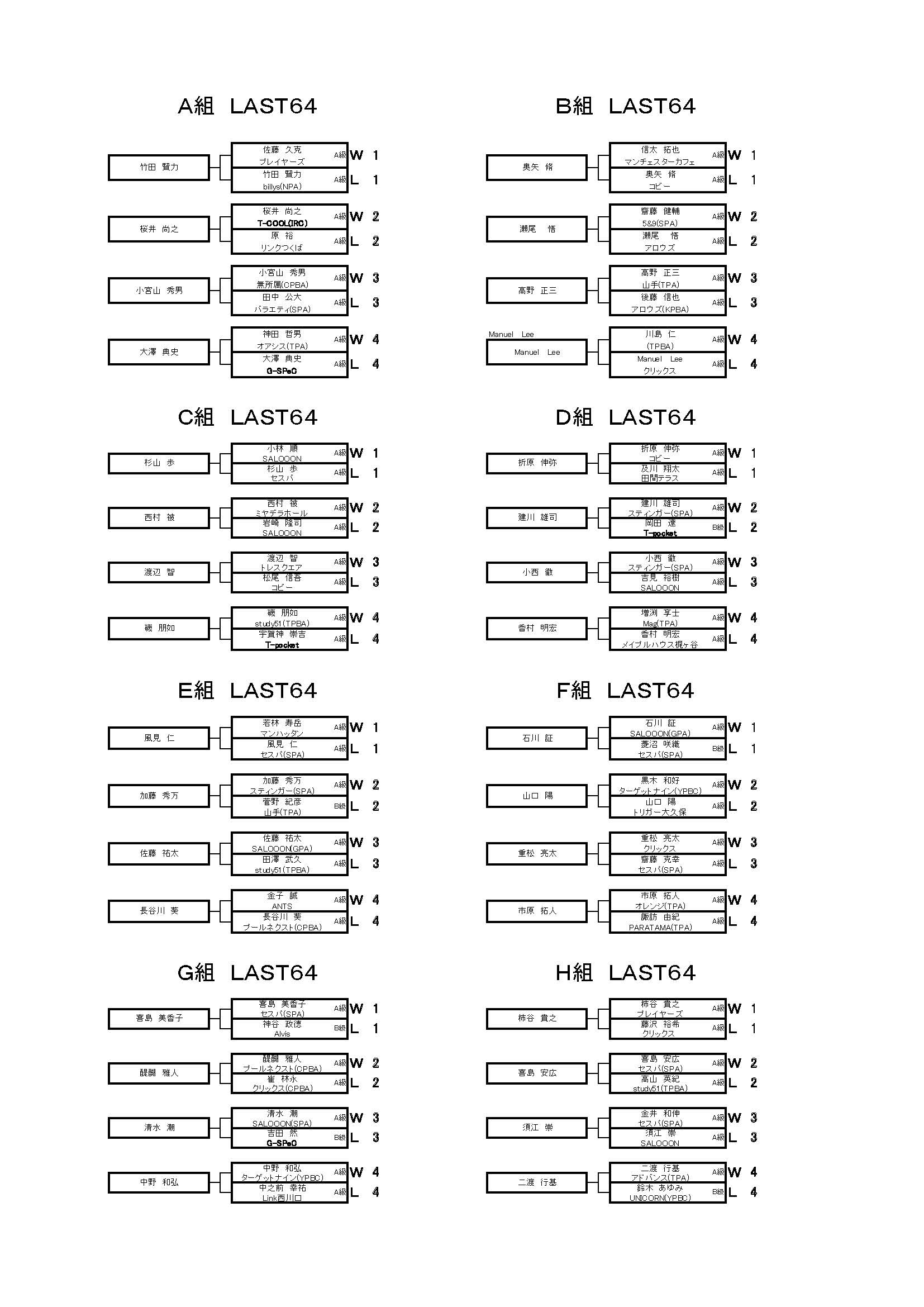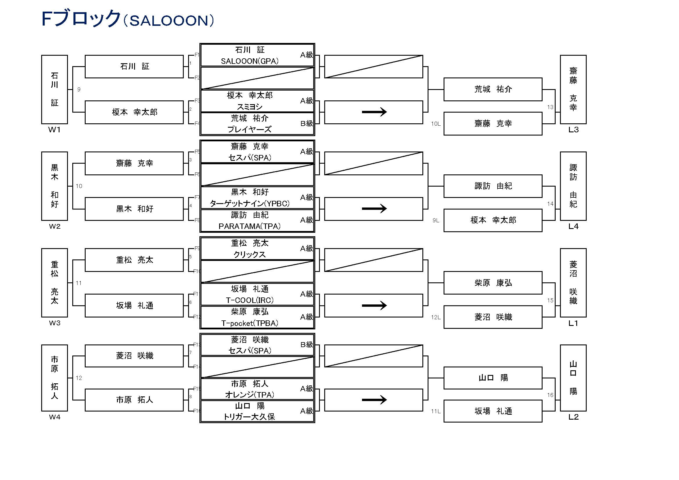 五位タイ 瀬尾 悟/アロウズ、佐藤 祐太/GPA、磯 朋如/TPBA、柿谷 貴之/プレイヤーズ