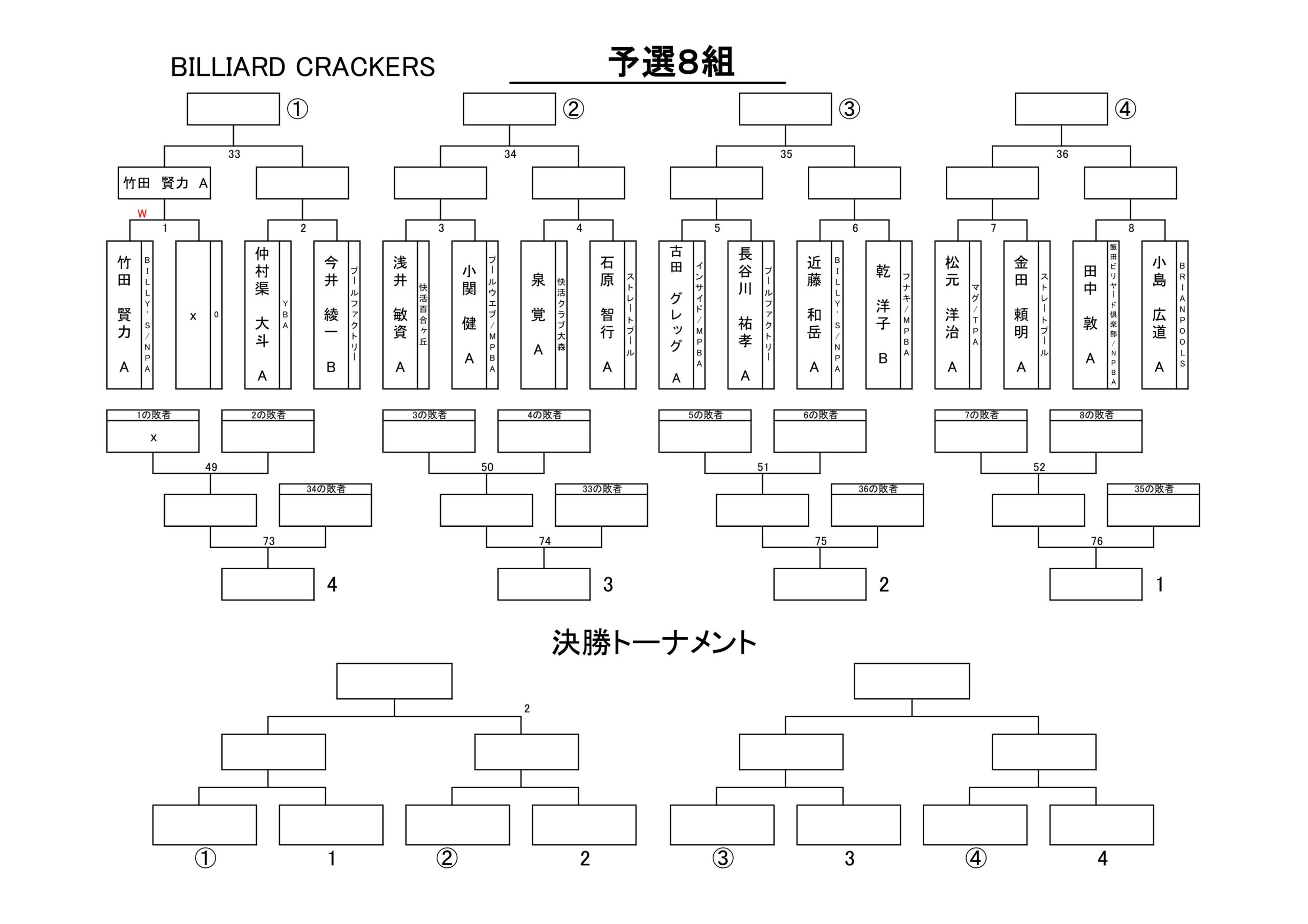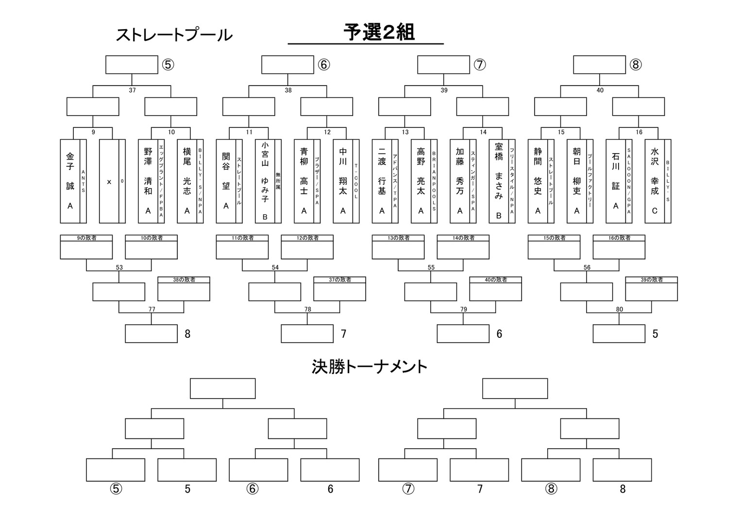会場:ストレートプール(予選、決勝)、プールファクトリー寺尾店(予選)、CRACKERS(予選)