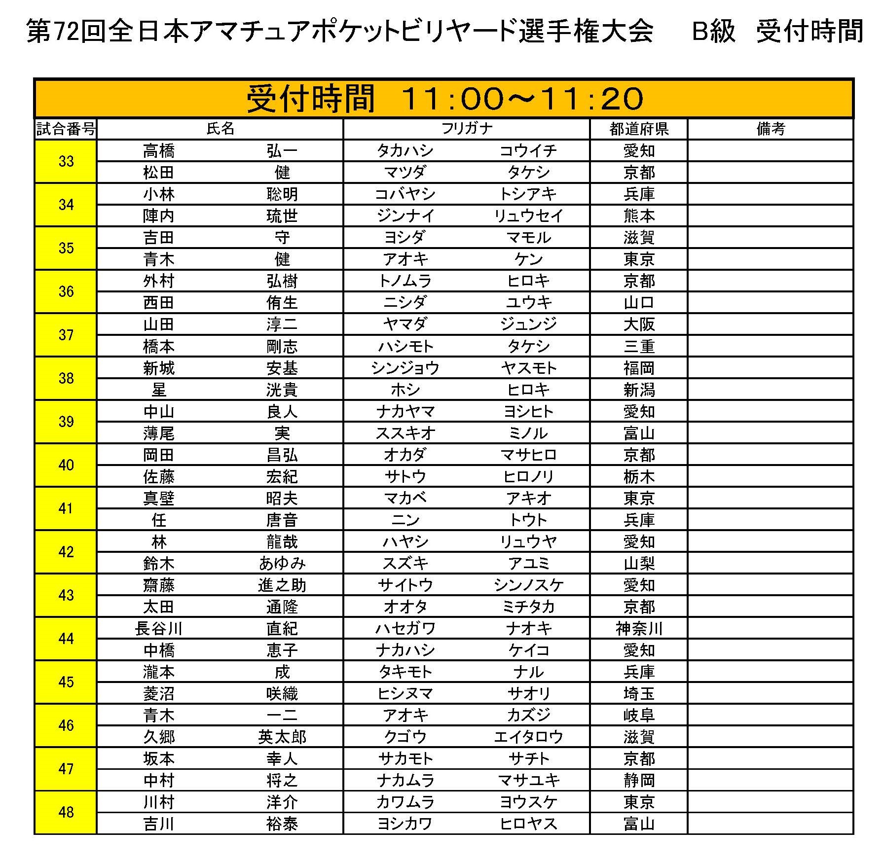 〇 試合番号 33 ~ 48 / 受付時間 11:00~11:20