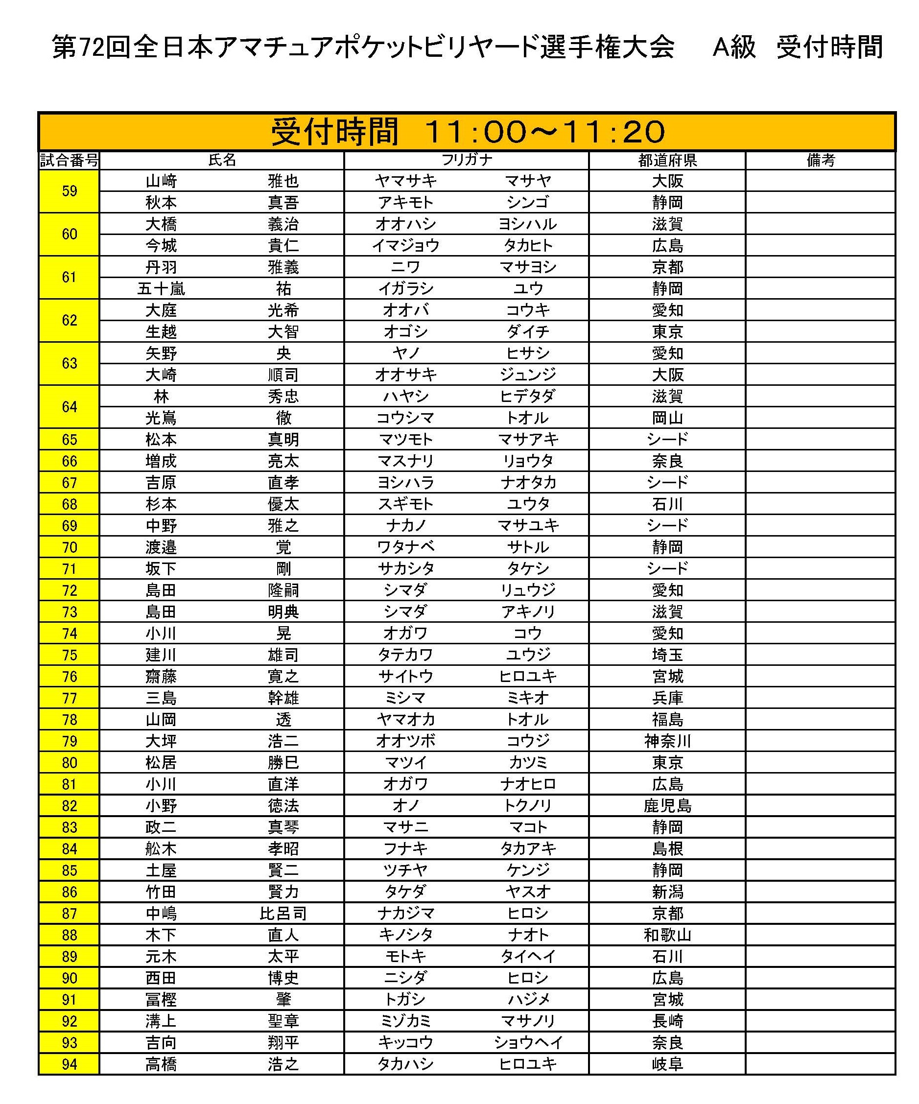 〇 試合番号 59 ~ 94 / 受付時間 11:00~11:20