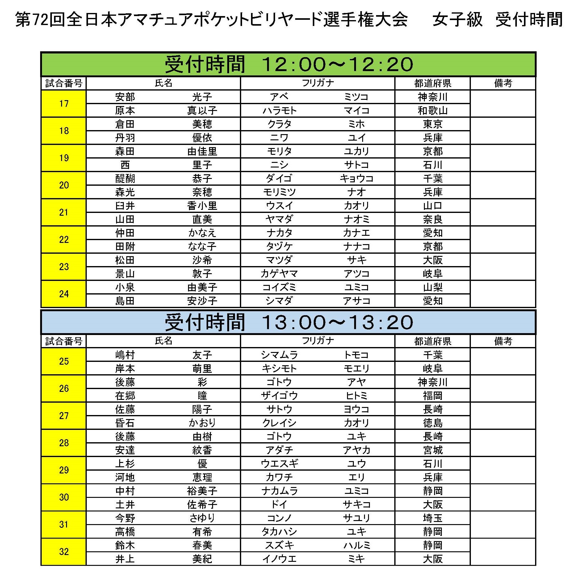〇 試合番号 17 ~ 24 / 受付時間 12:00~12:20