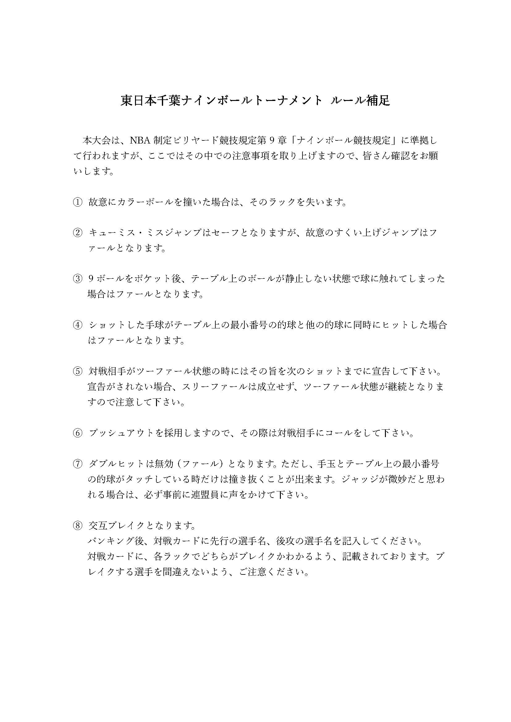 第19回東日本千葉ナインボールトーナメント、開催要項PDFはこちら