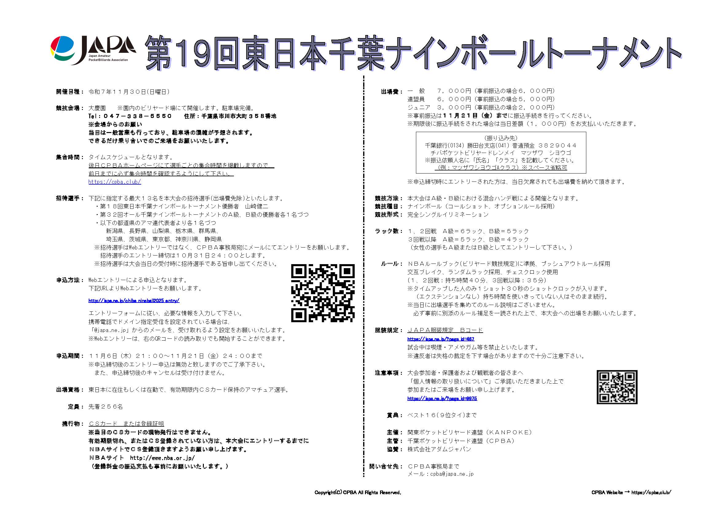 第19回 東日本千葉ナインボールトーナメント【開催要項】