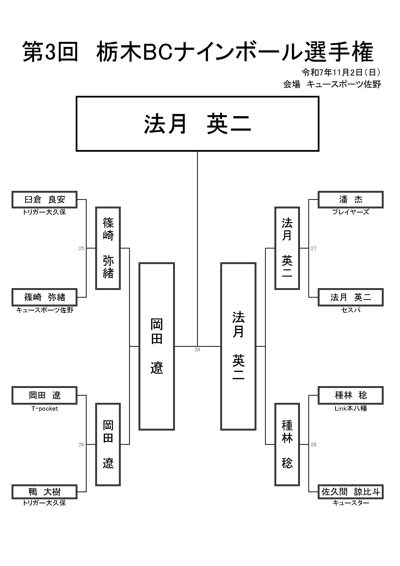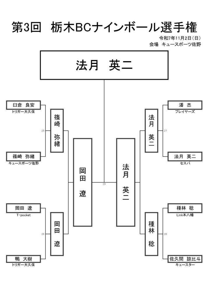 第3回 栃木BCナインボール選手権 、法月 英二が優勝