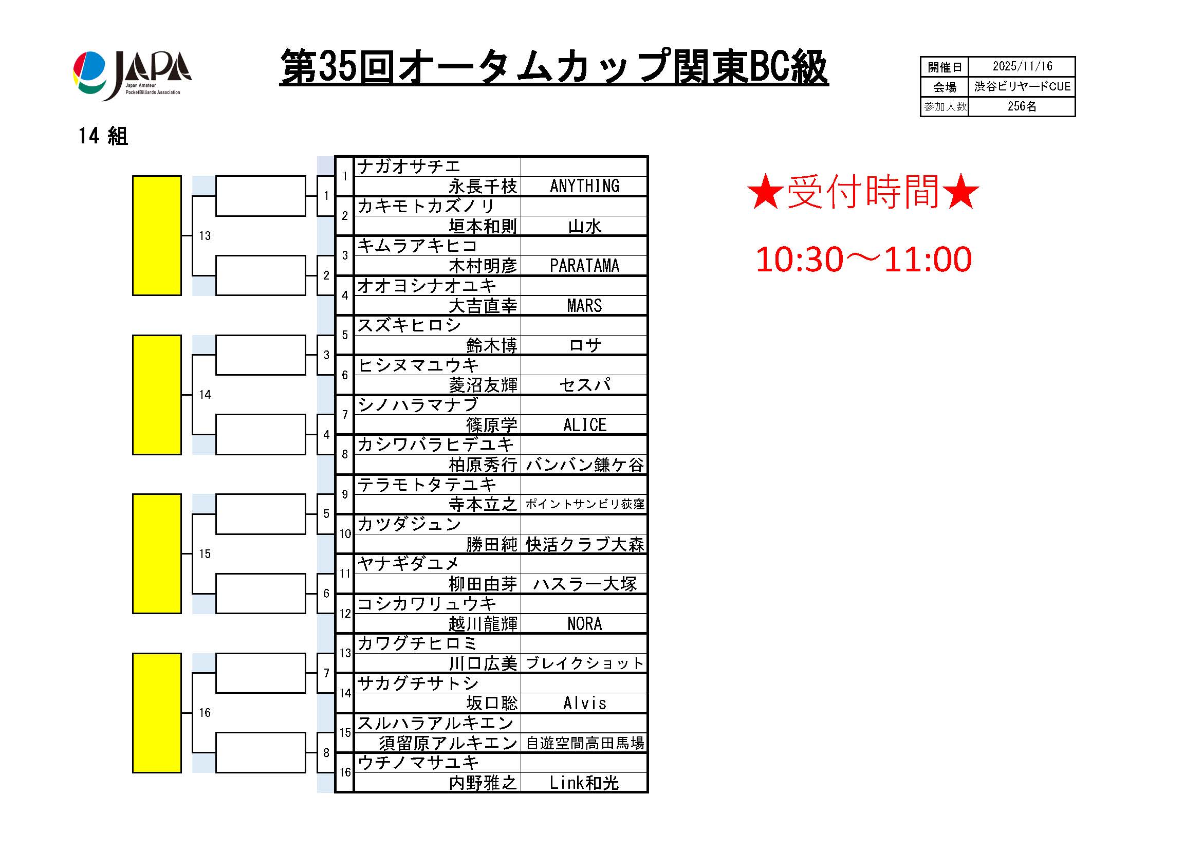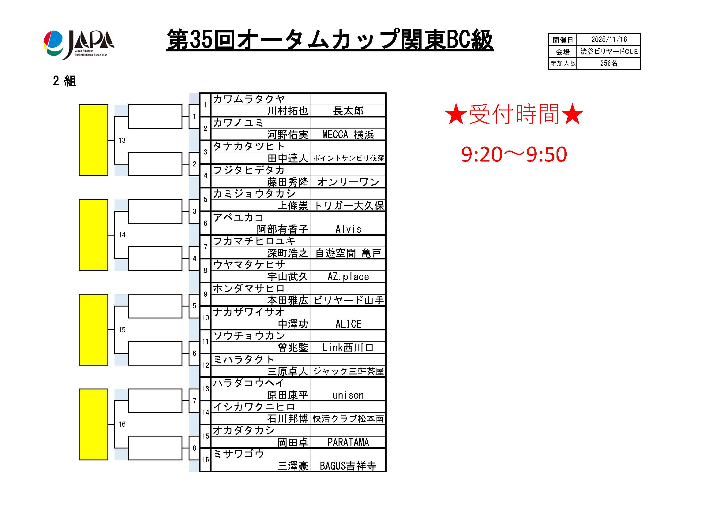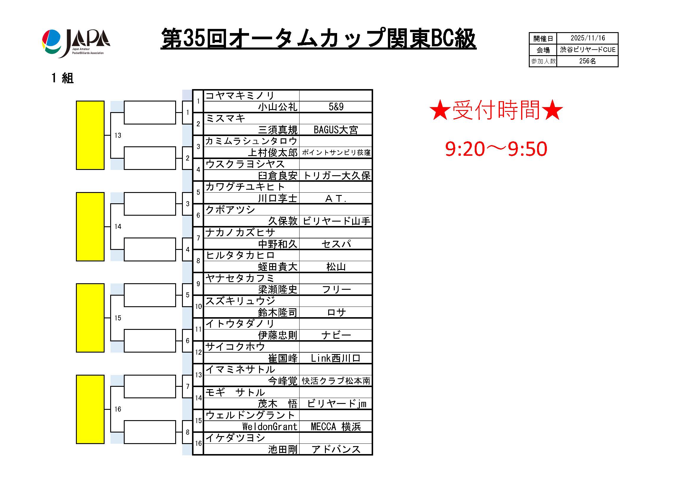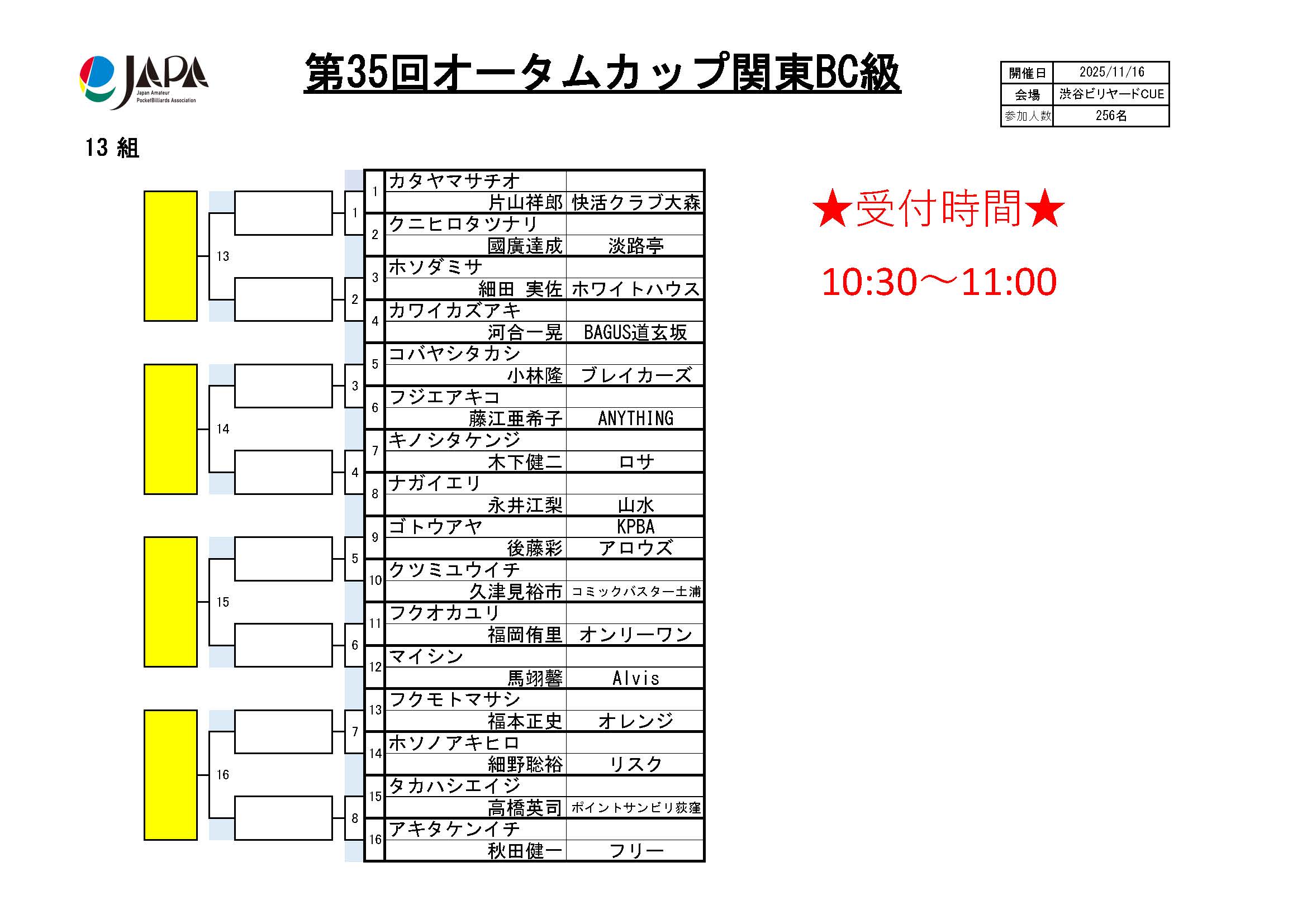 第35回 オータムカップ 関東BC級、組合せ