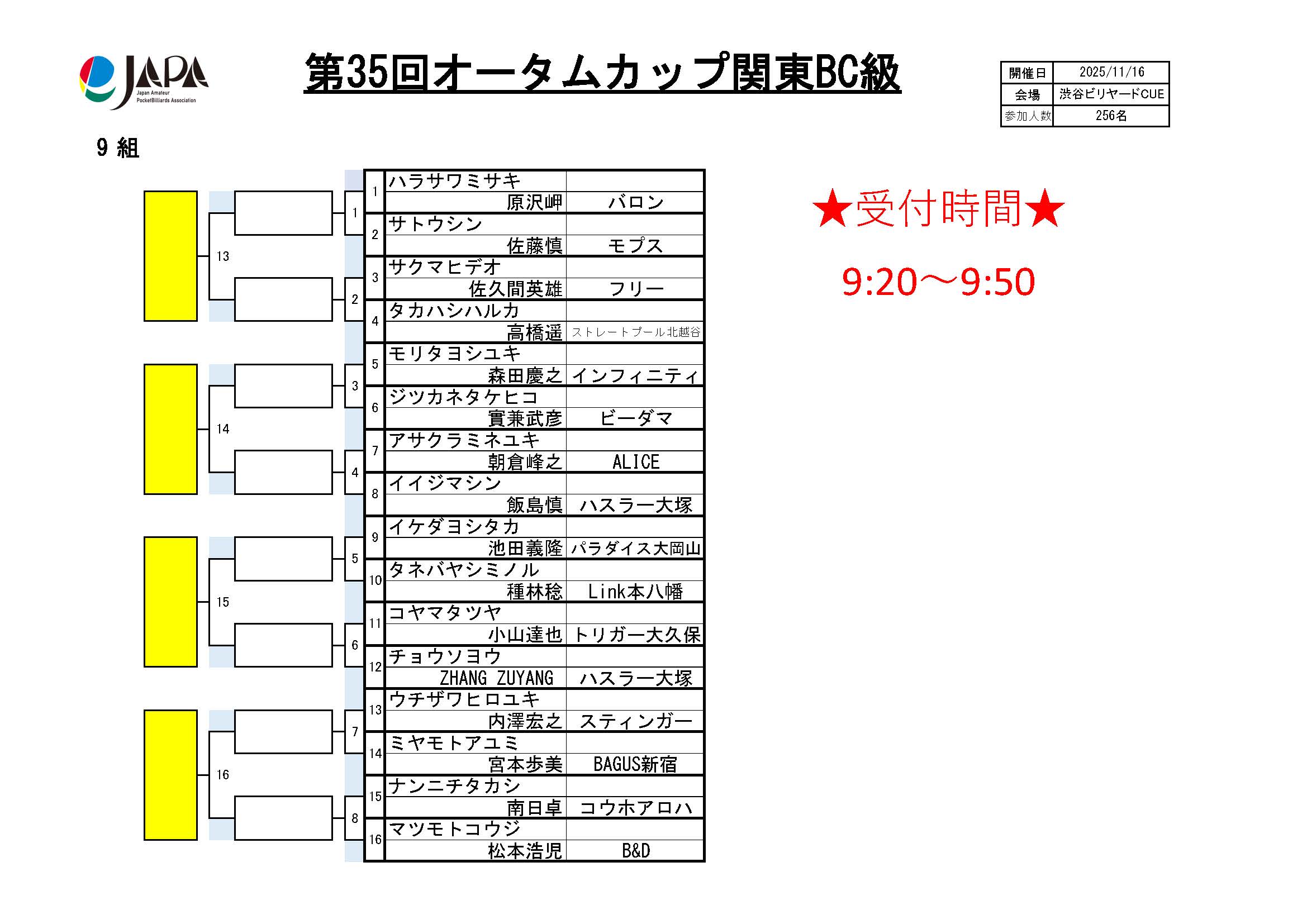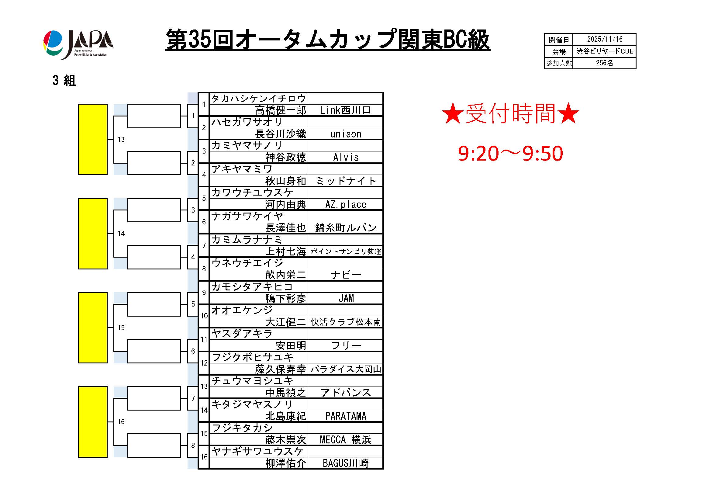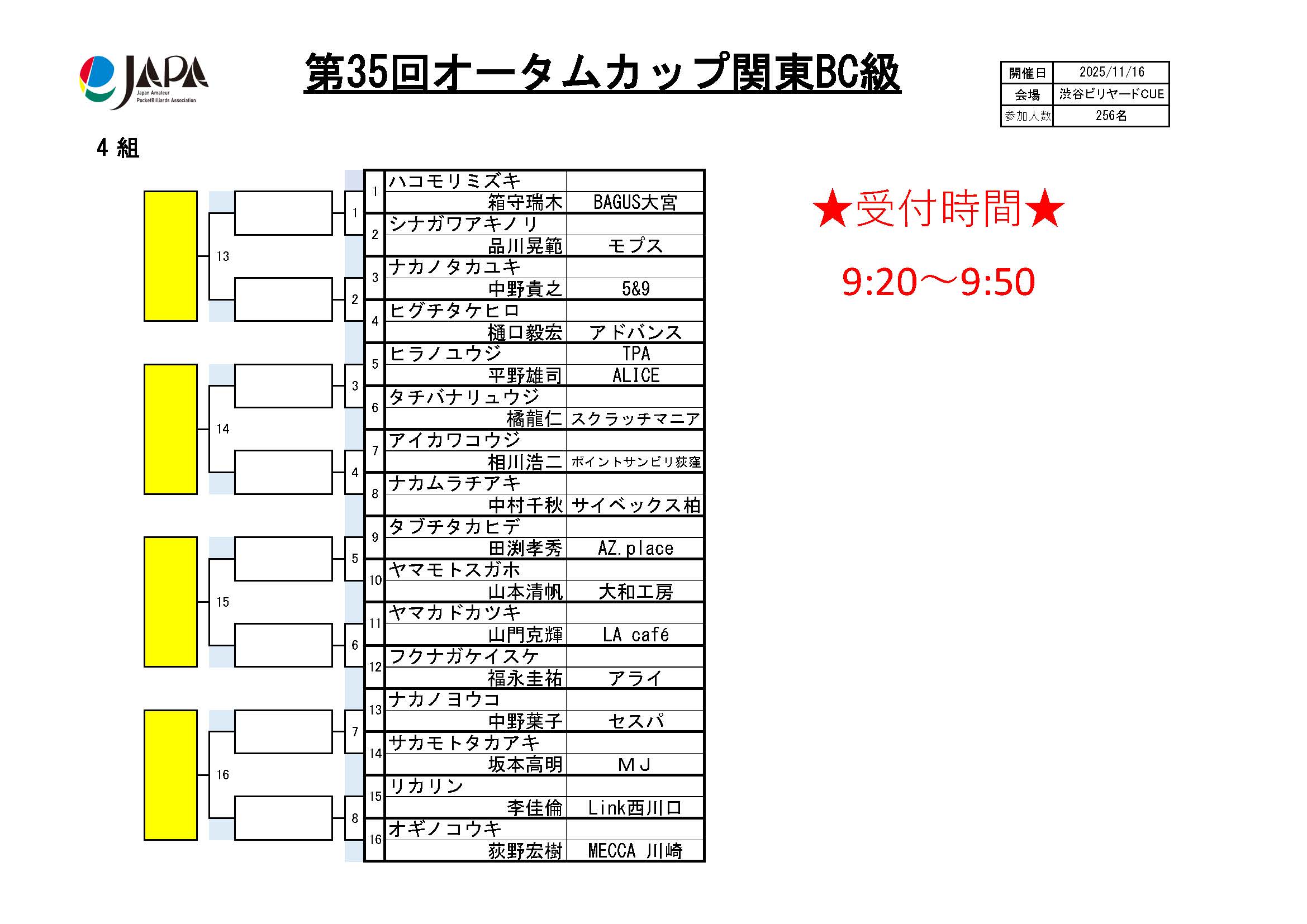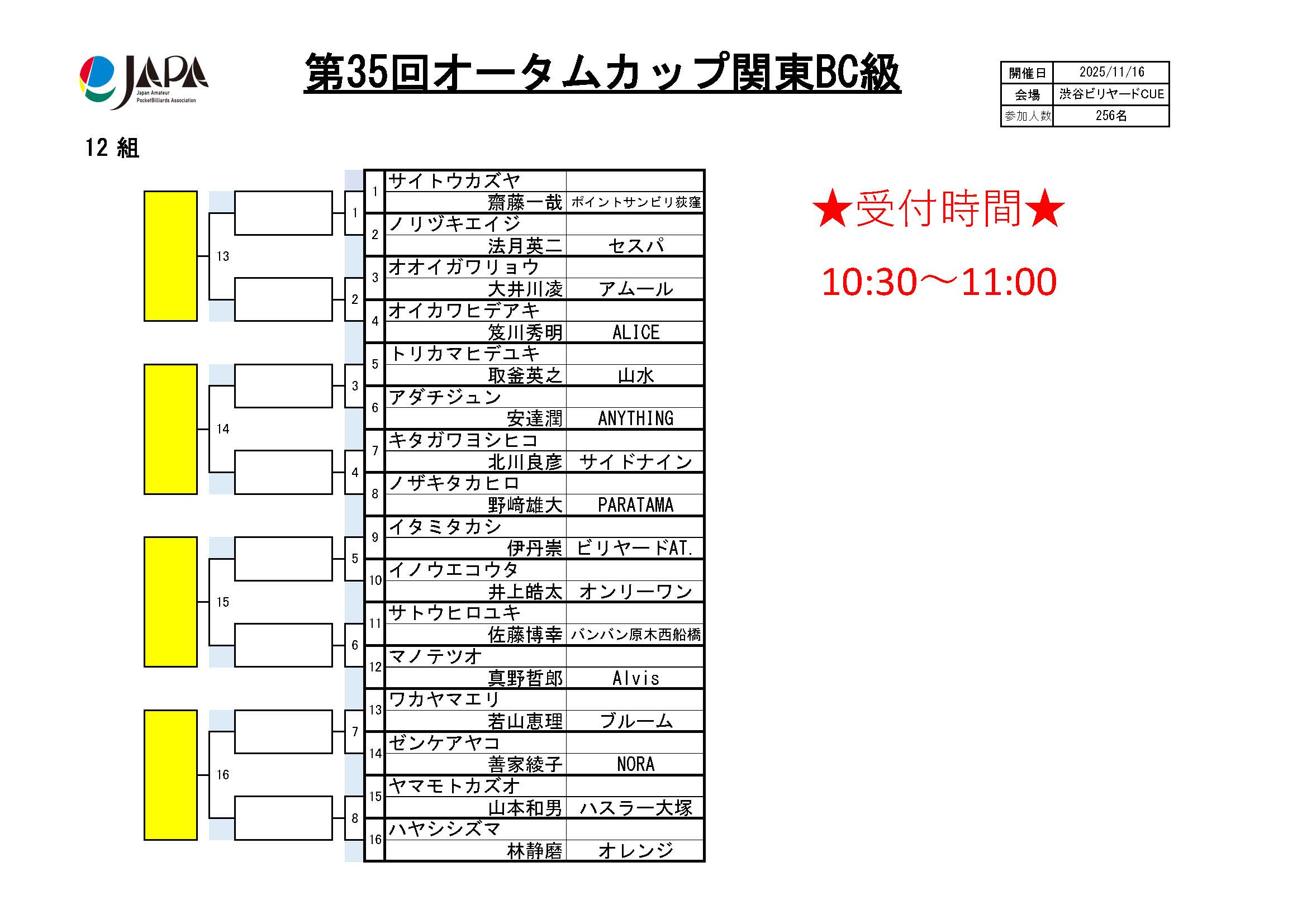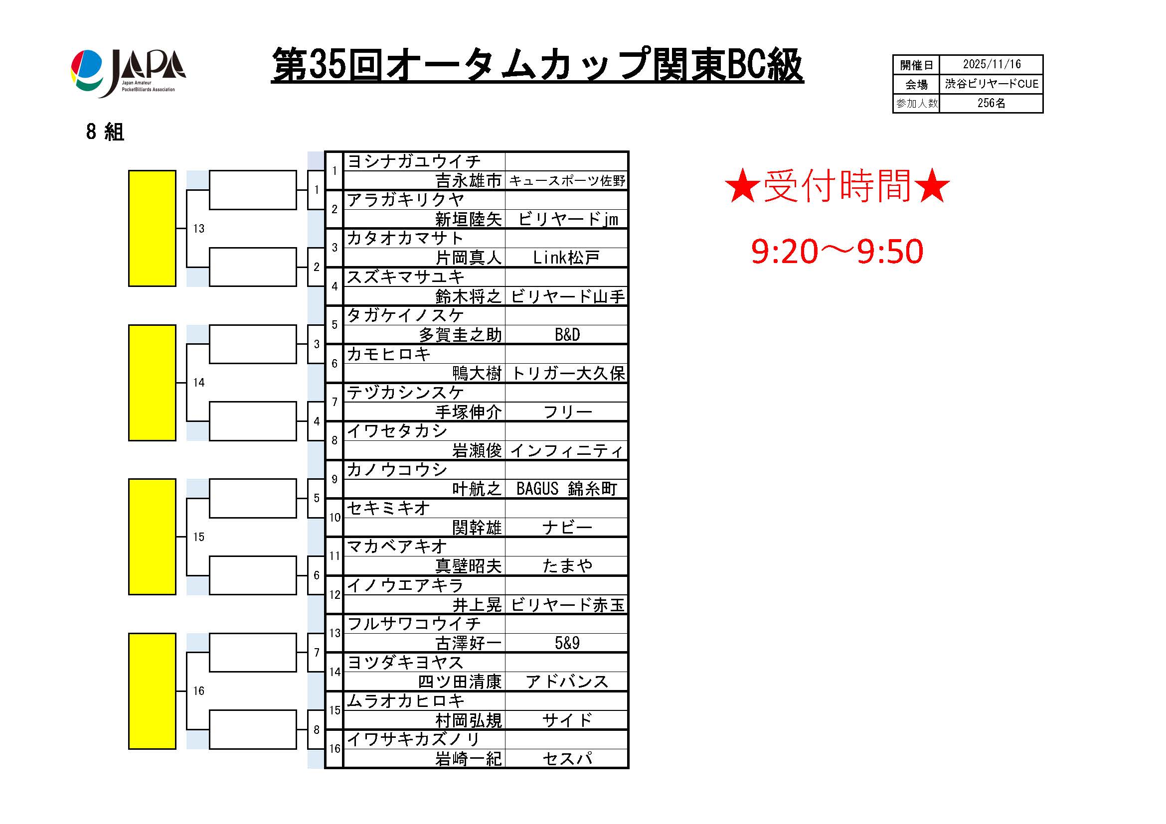 第35回 オータムカップ 関東BC級、組合せ