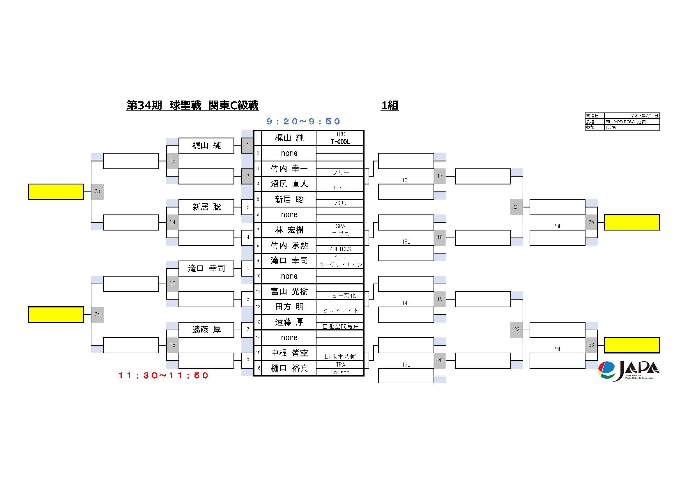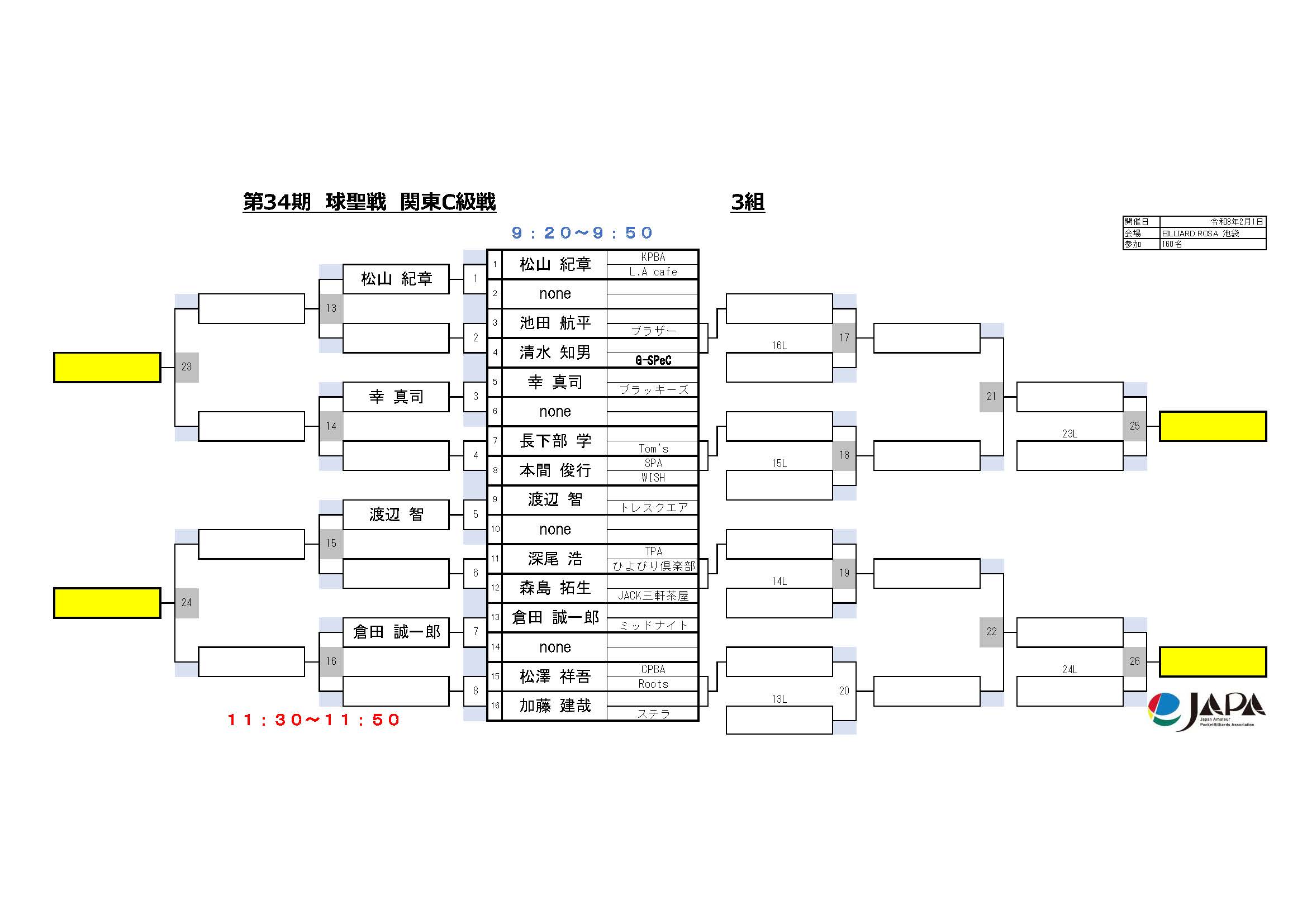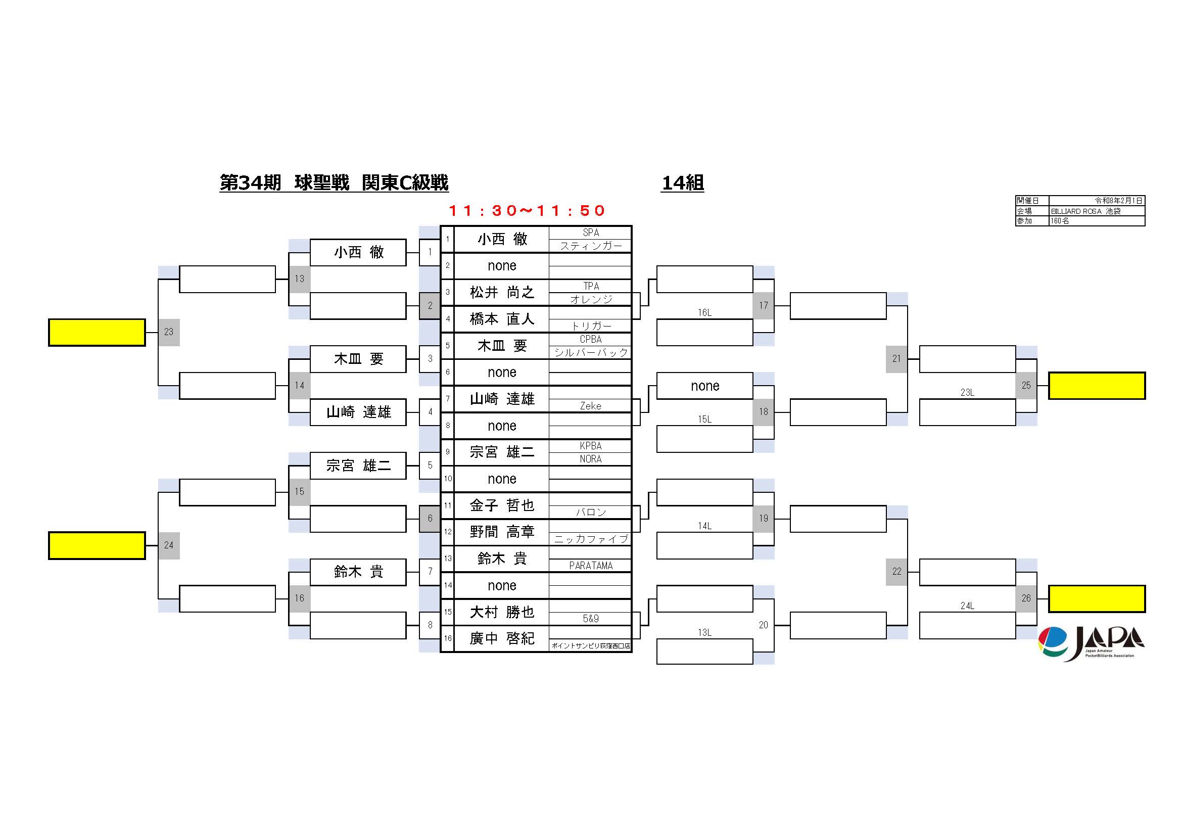 第34期球聖戦、関東C級戦【BILLIARD ROSA】組合せ