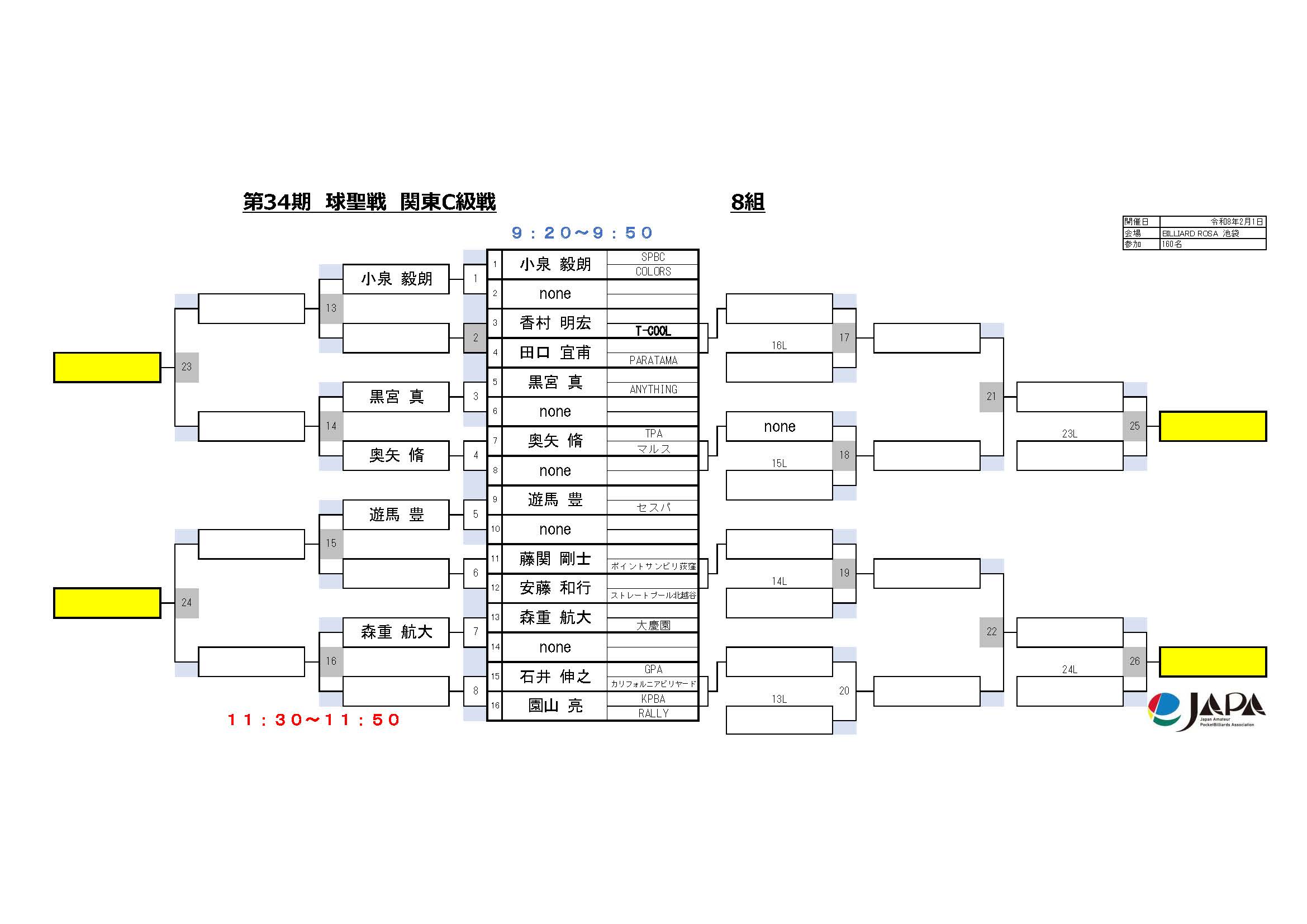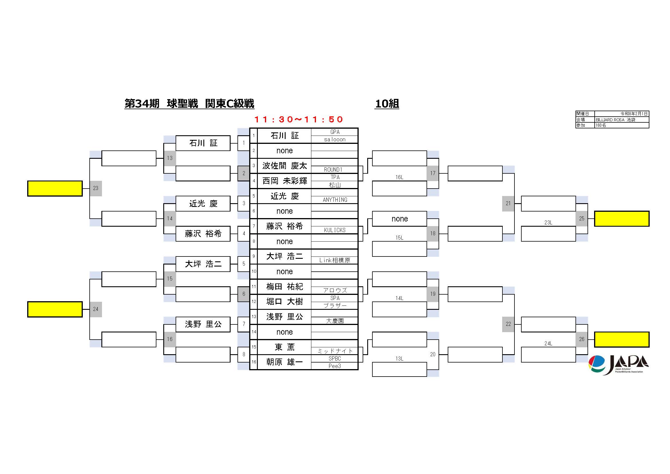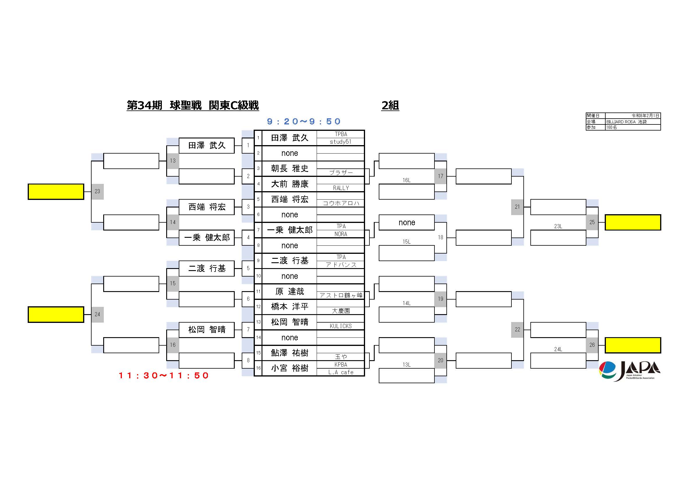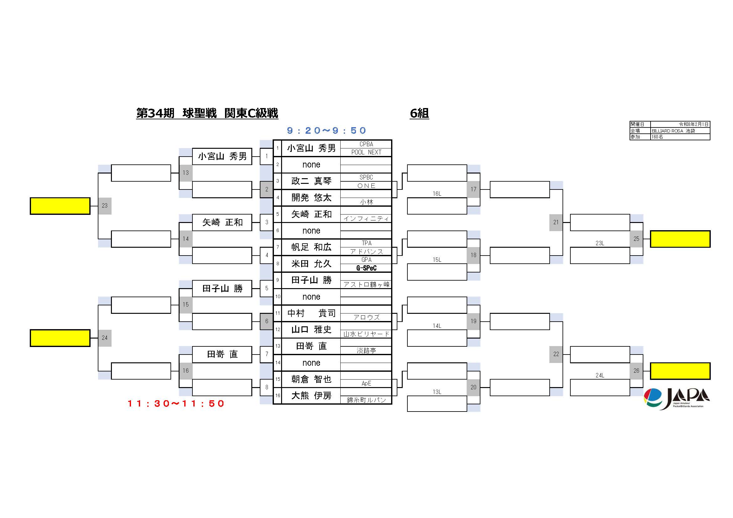 第34期球聖戦、関東C級戦【BILLIARD ROSA】組合せ