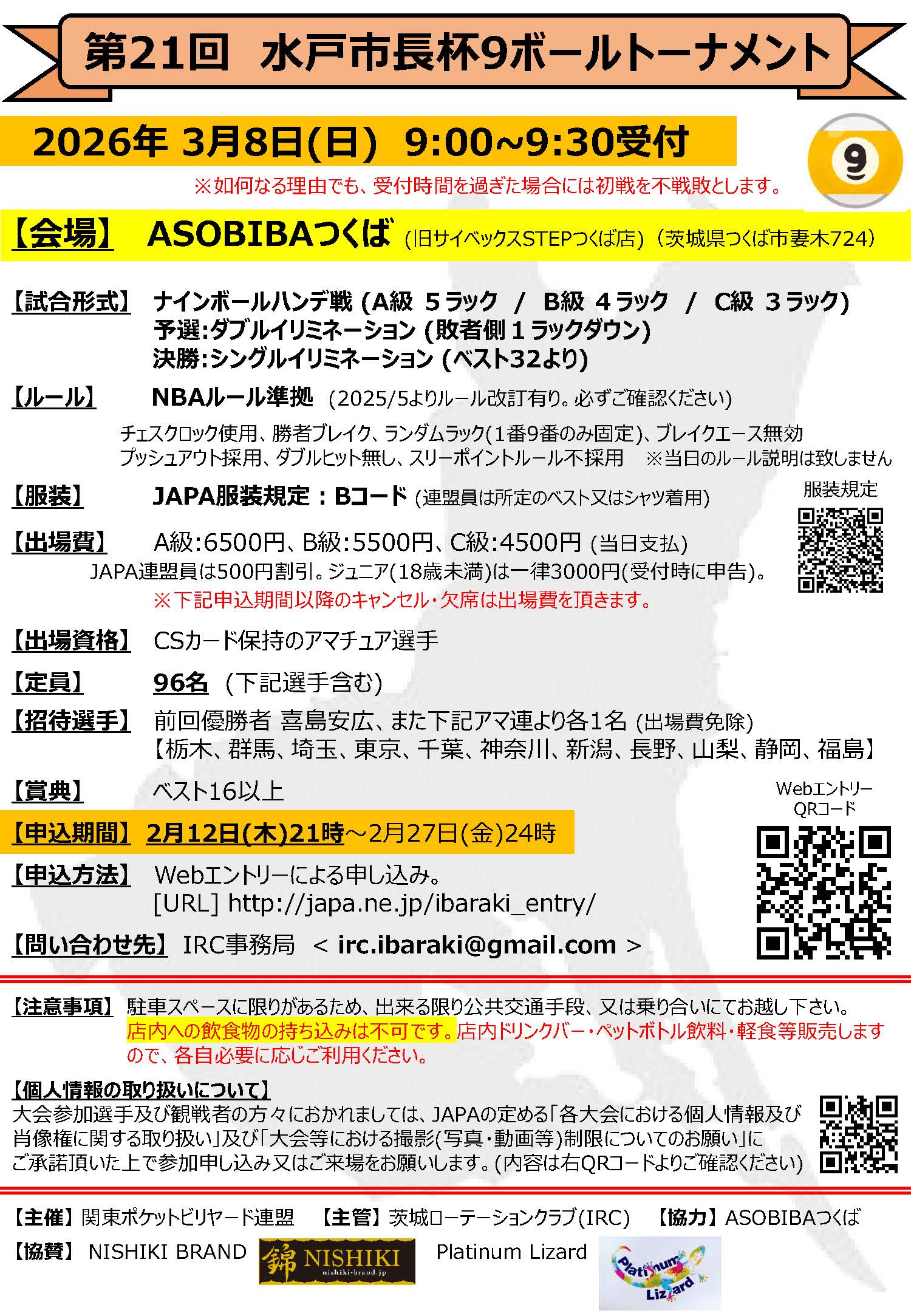 第21回 水戸市長杯9ボールトーナメント、開催要項