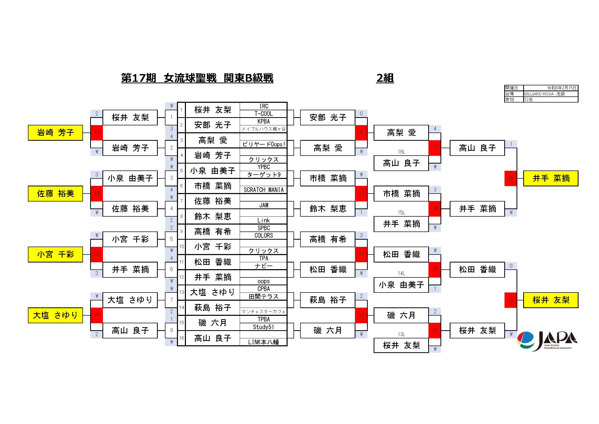 第17期 女流球聖戦、東日本(関東地区)大会、開催要項
