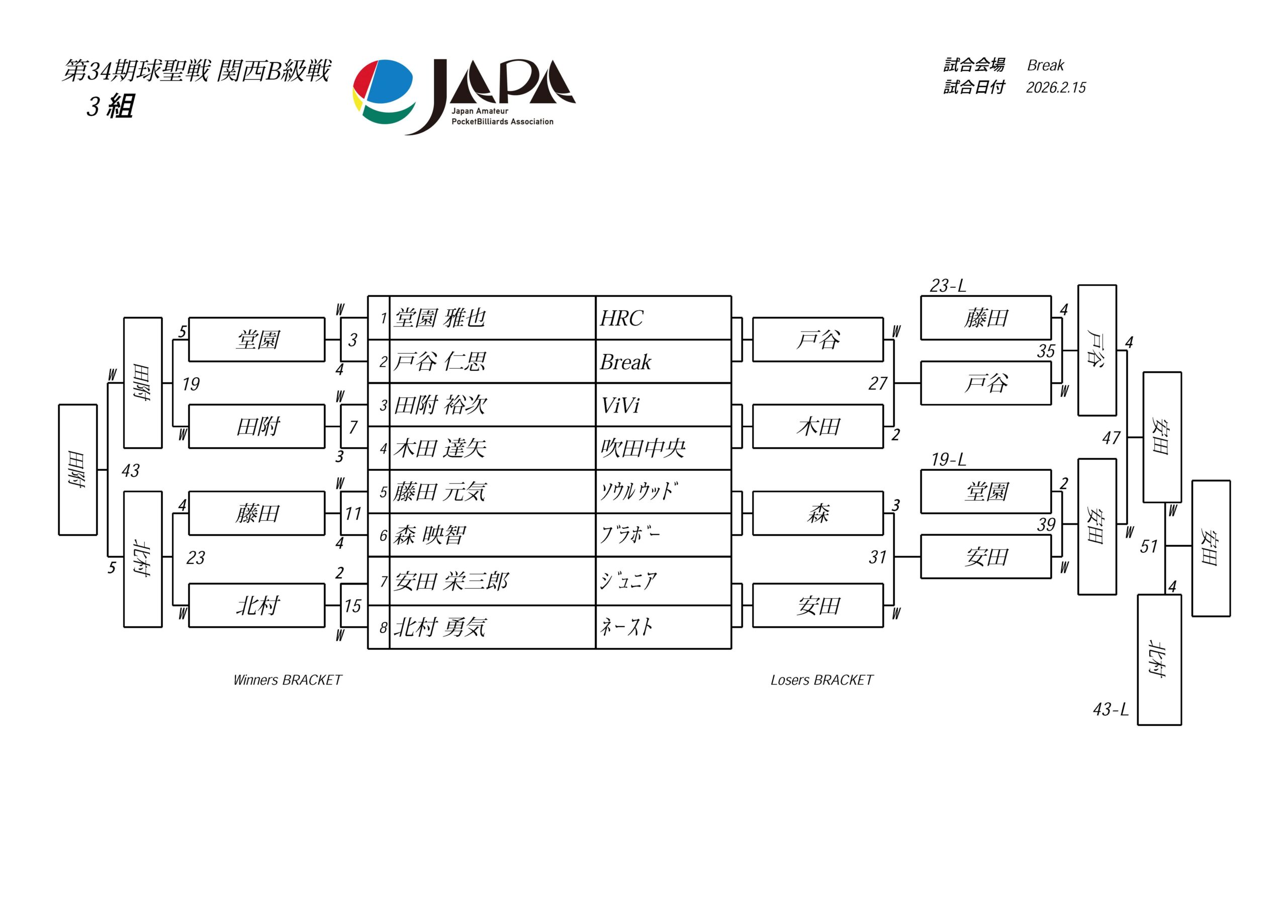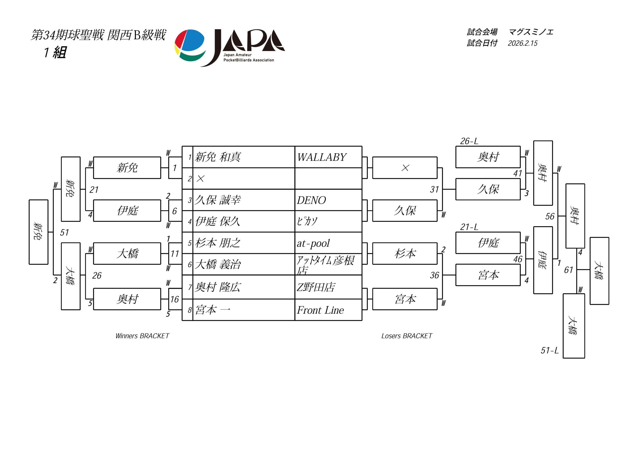 関西B級戦:2026年2月15日(日)