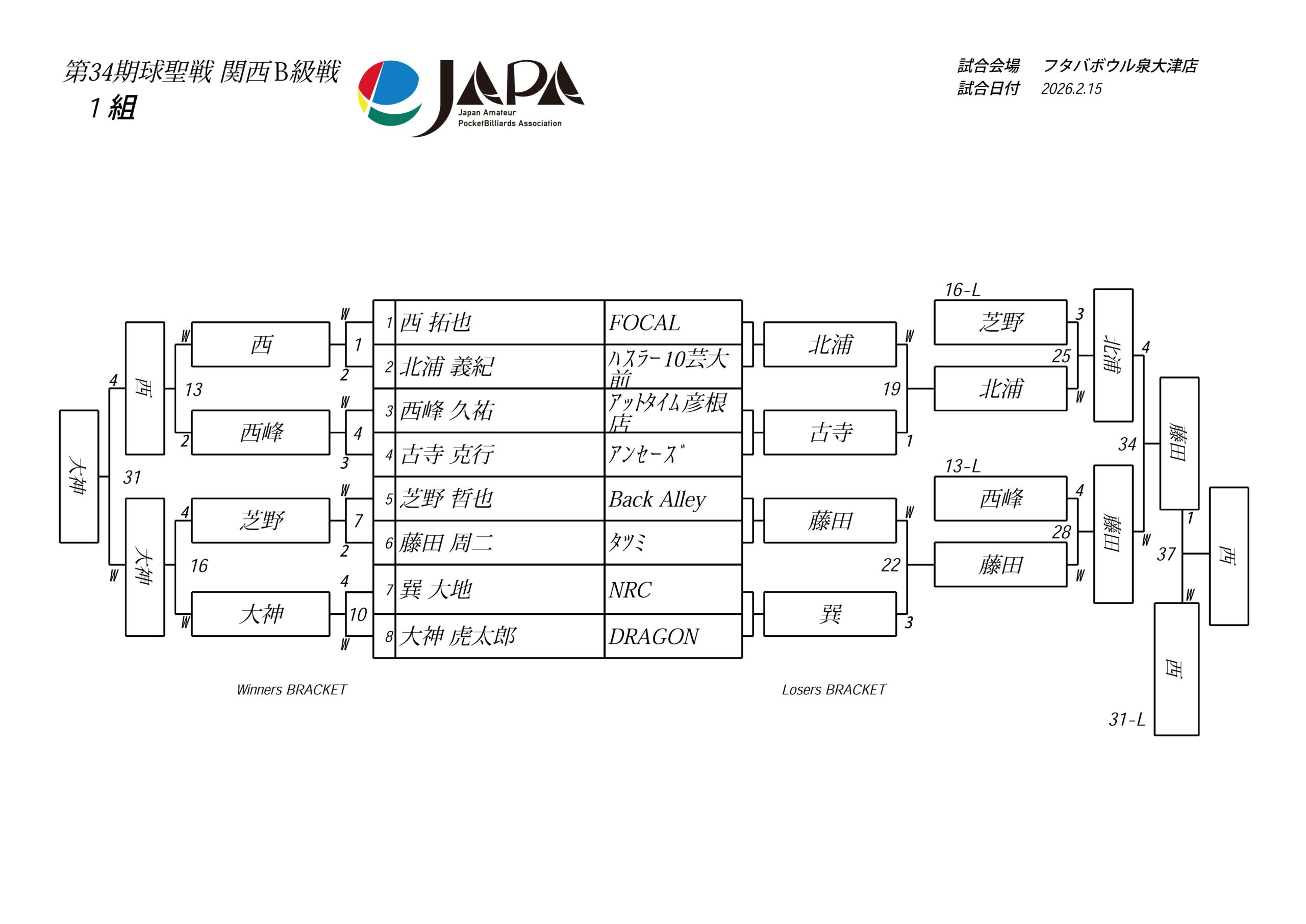 第34期 球聖戦 関西B級戦、結果