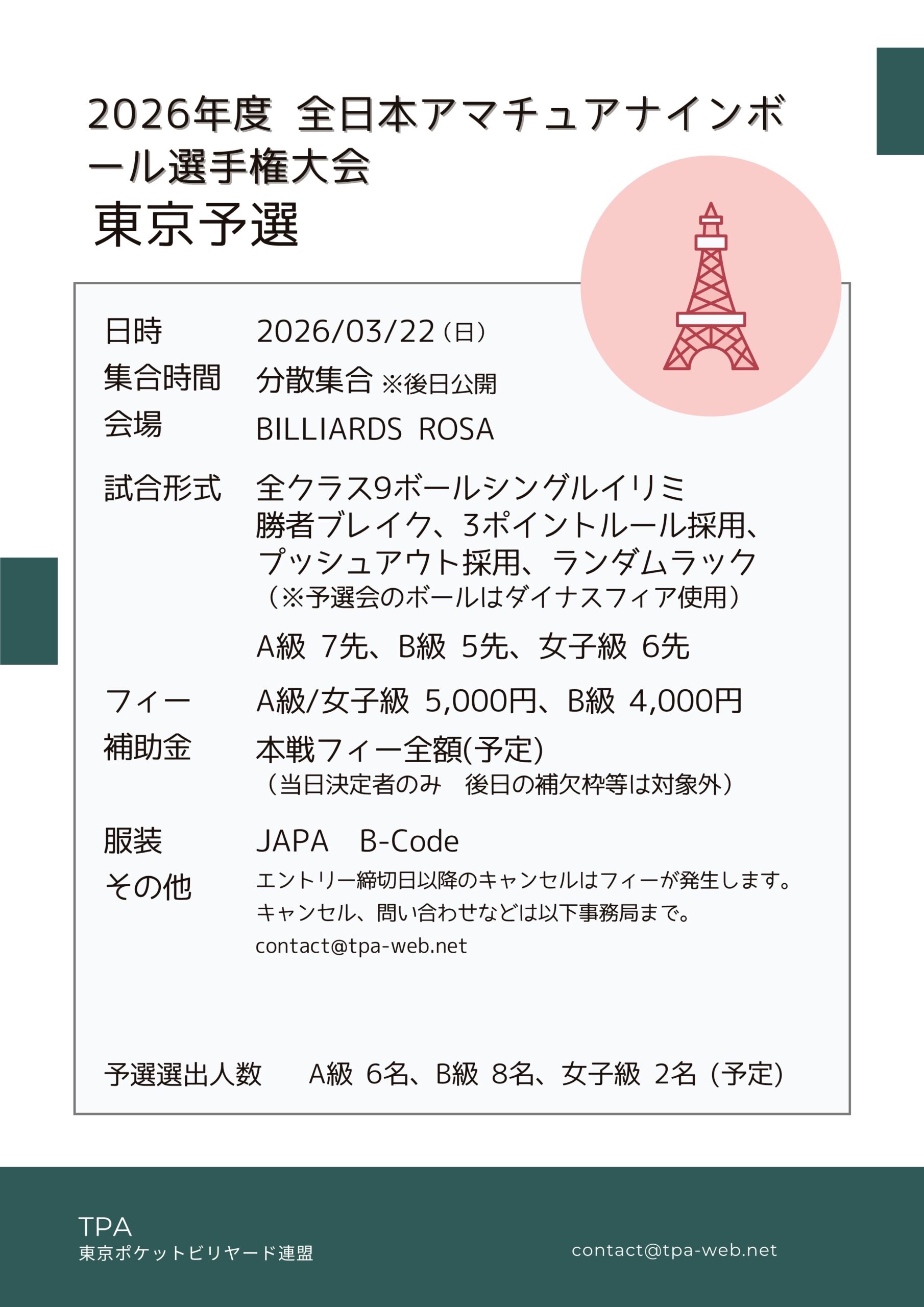 2026年全日本アマチュアナインボール選手権大会、東京都予選要項PDF