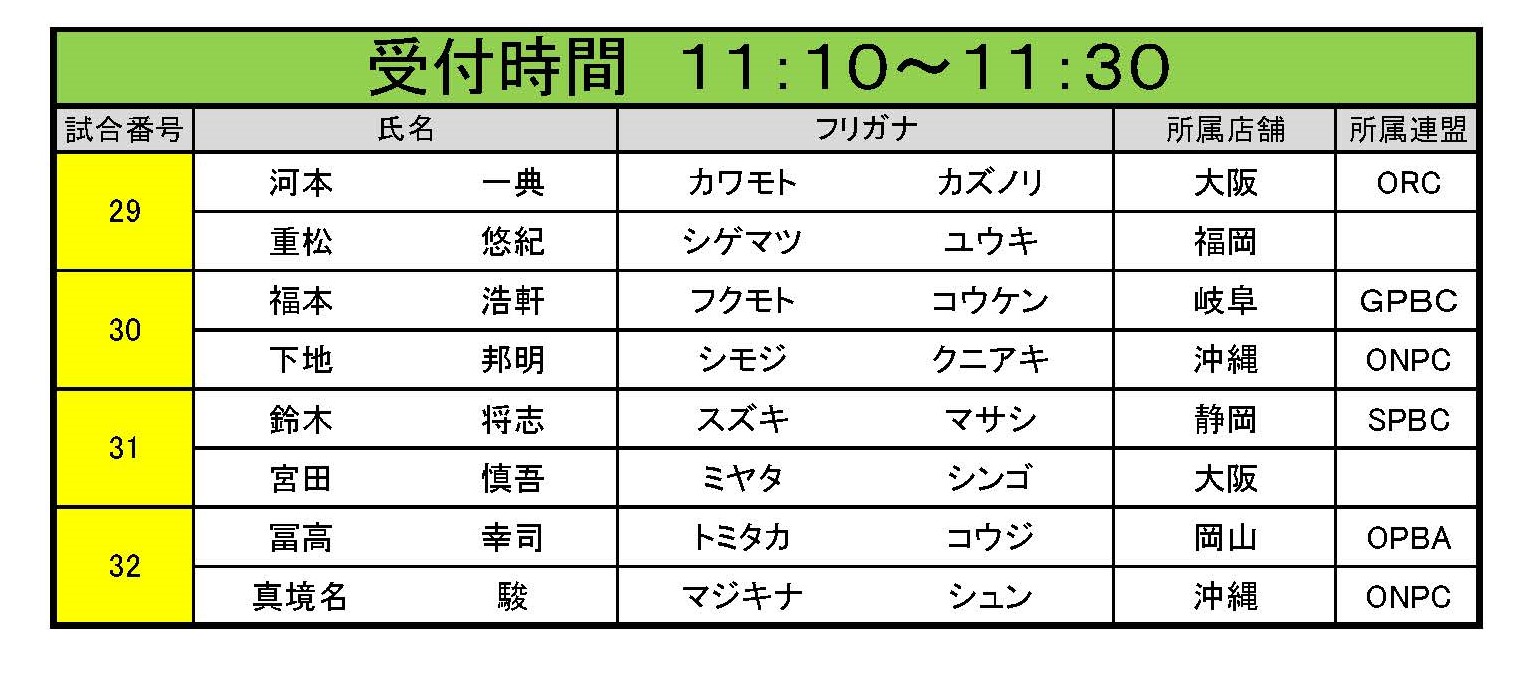 試合番号 29~32番 受付時間 午前11:10~午前11:30