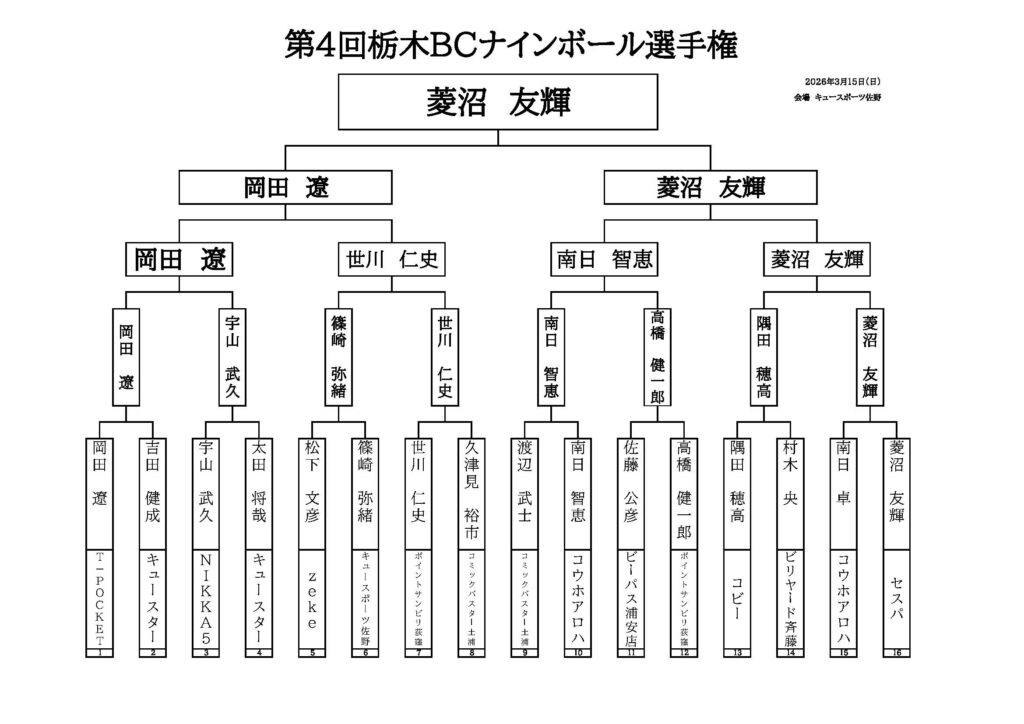 第4回 栃木BCナインボール選手権 、優勝は、菱沼 友輝!