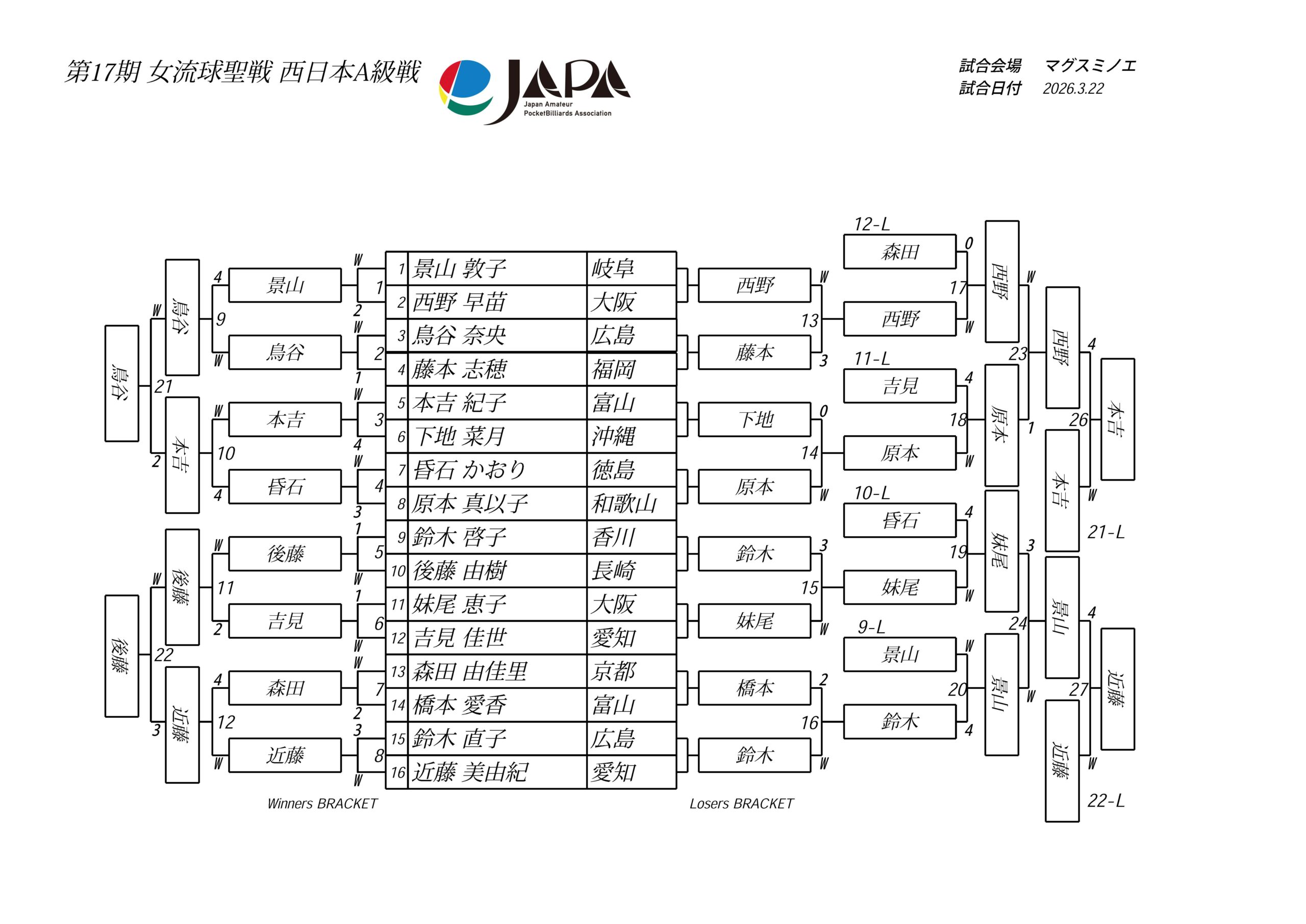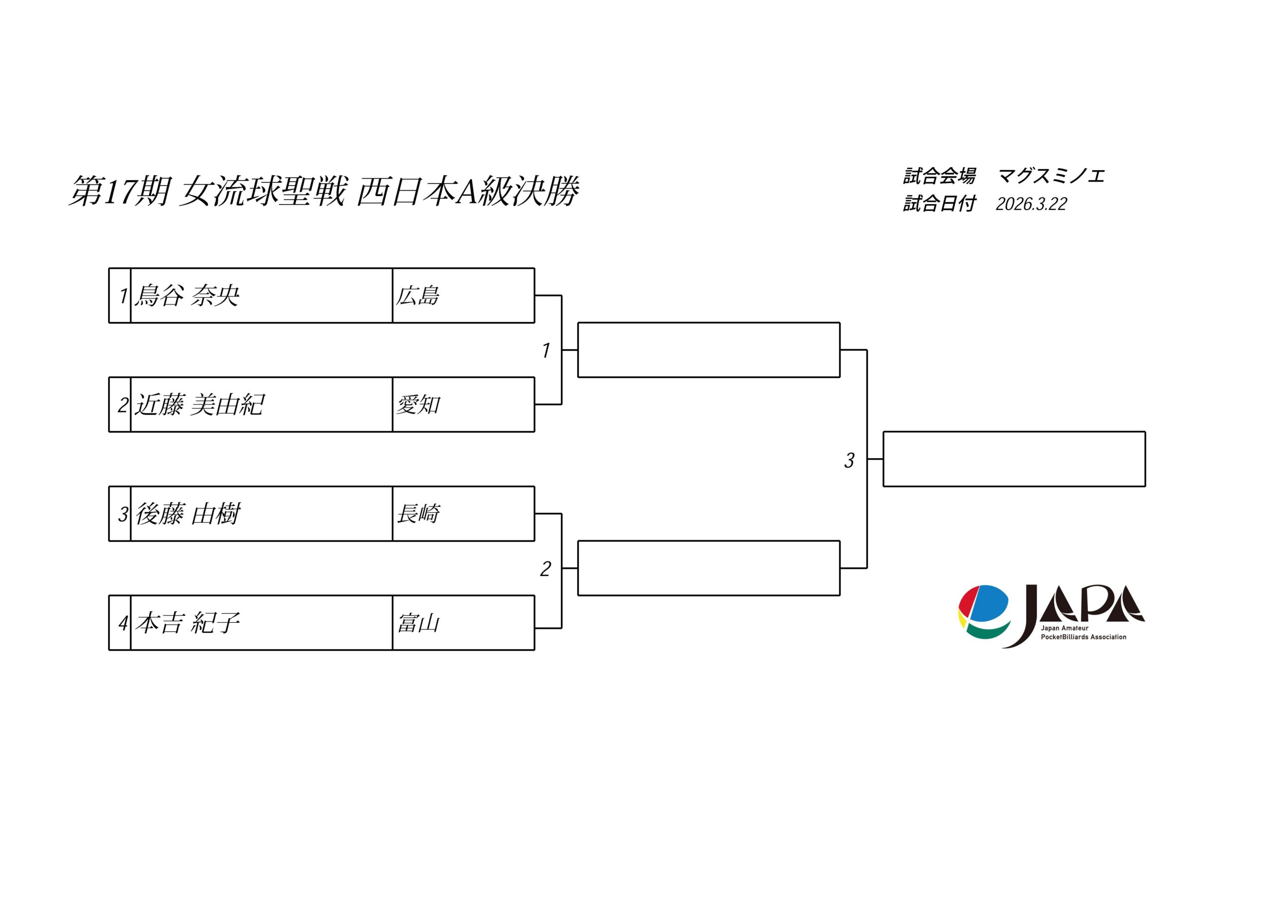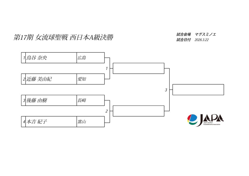 第17期 女流球聖戦 西日本A級 関西BC級 開催要項