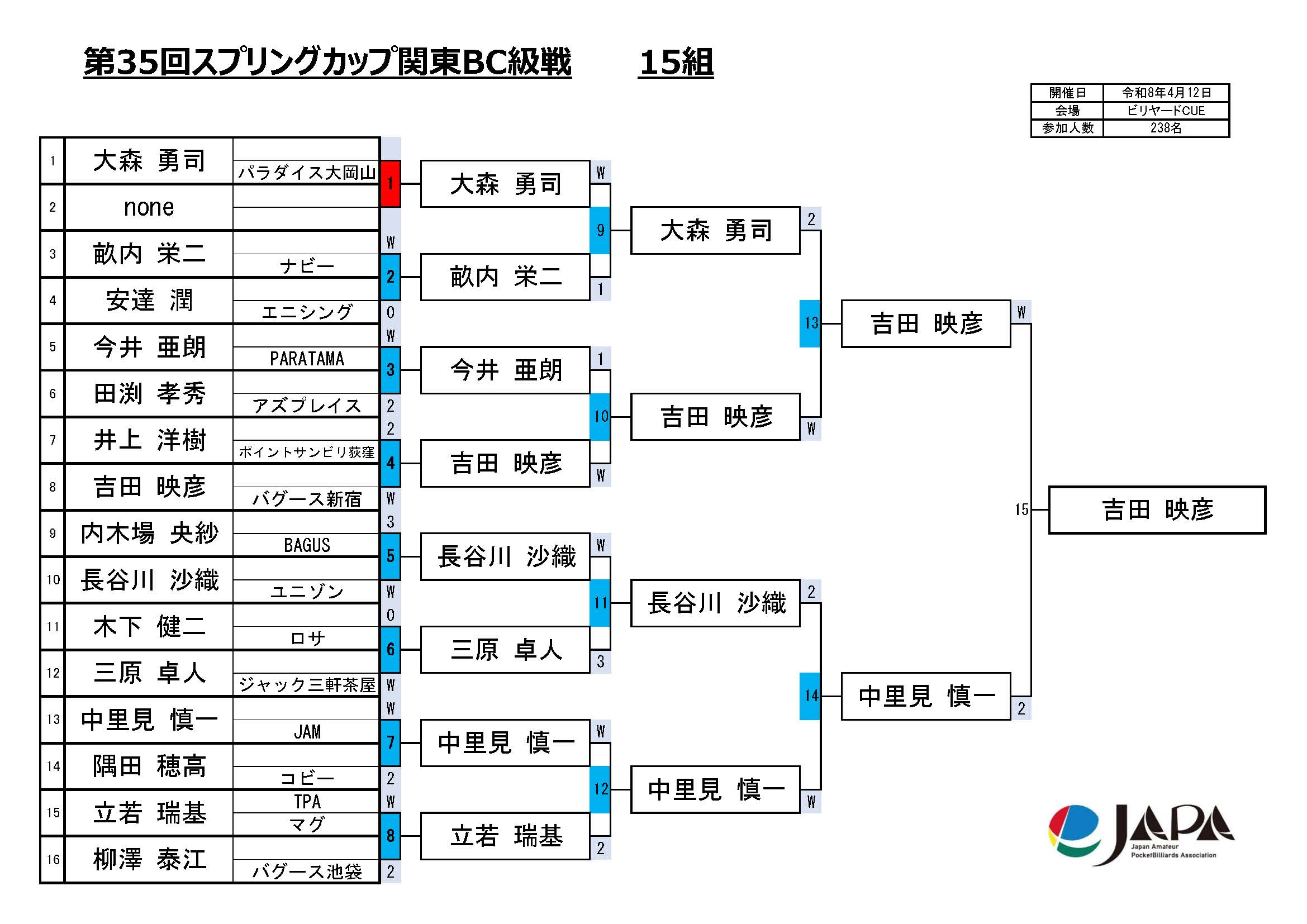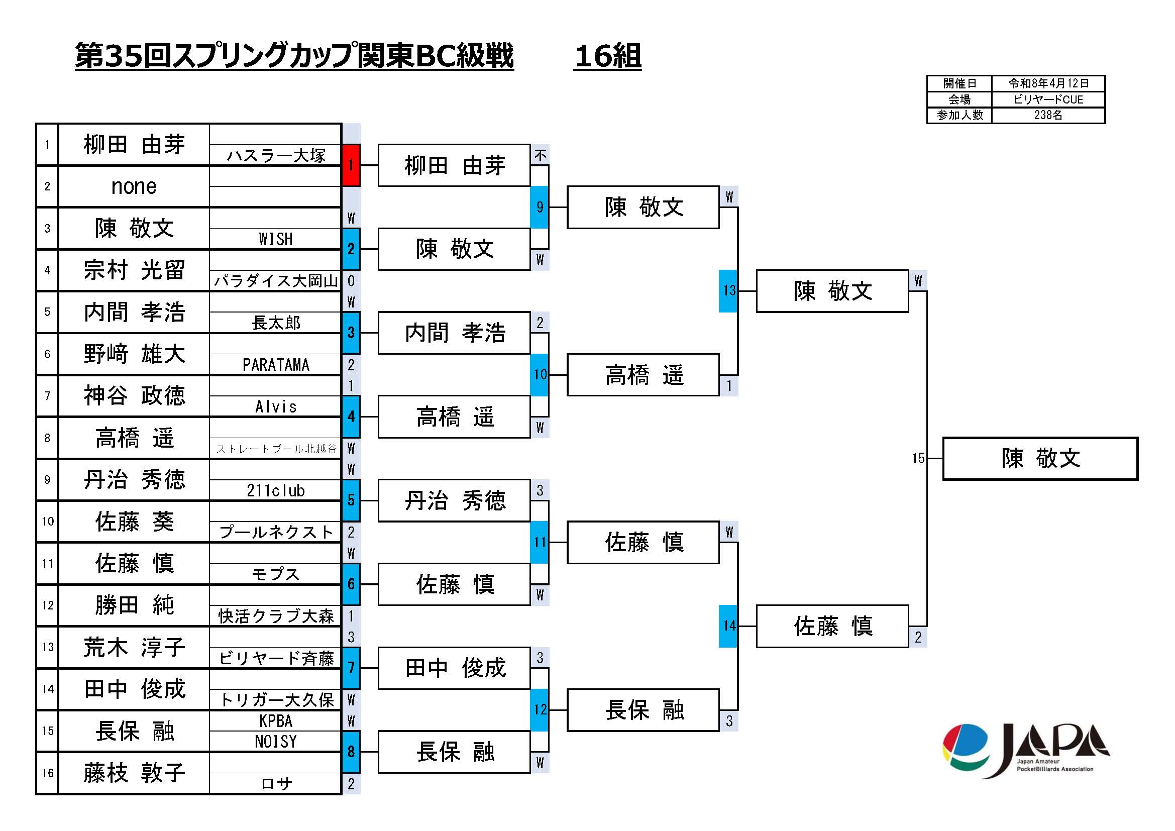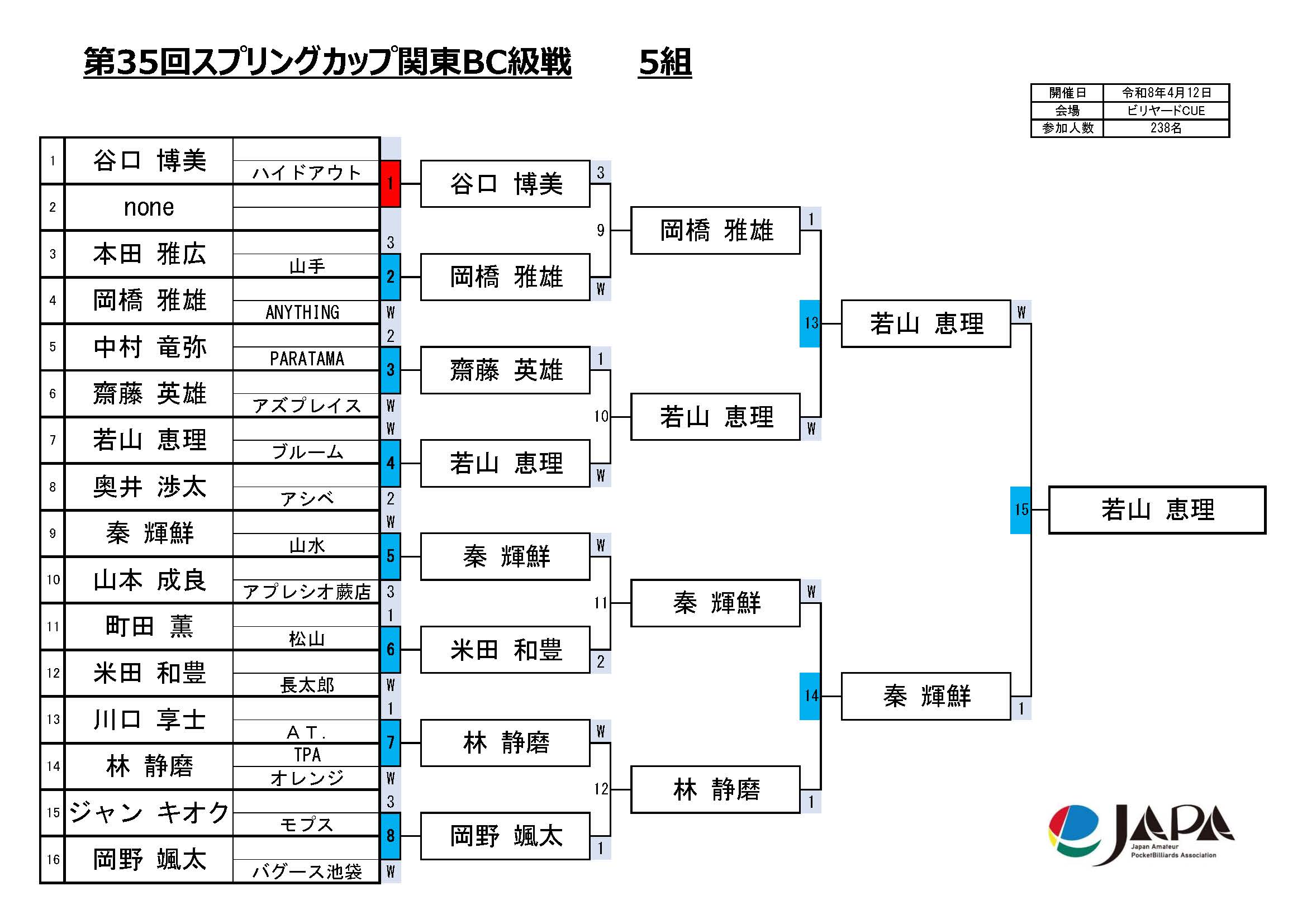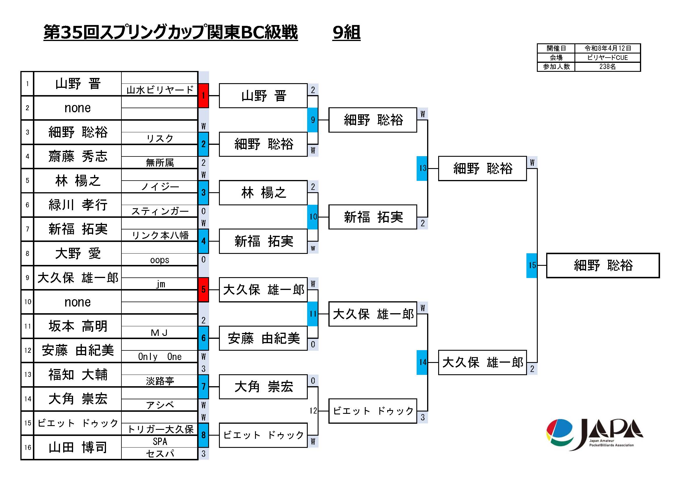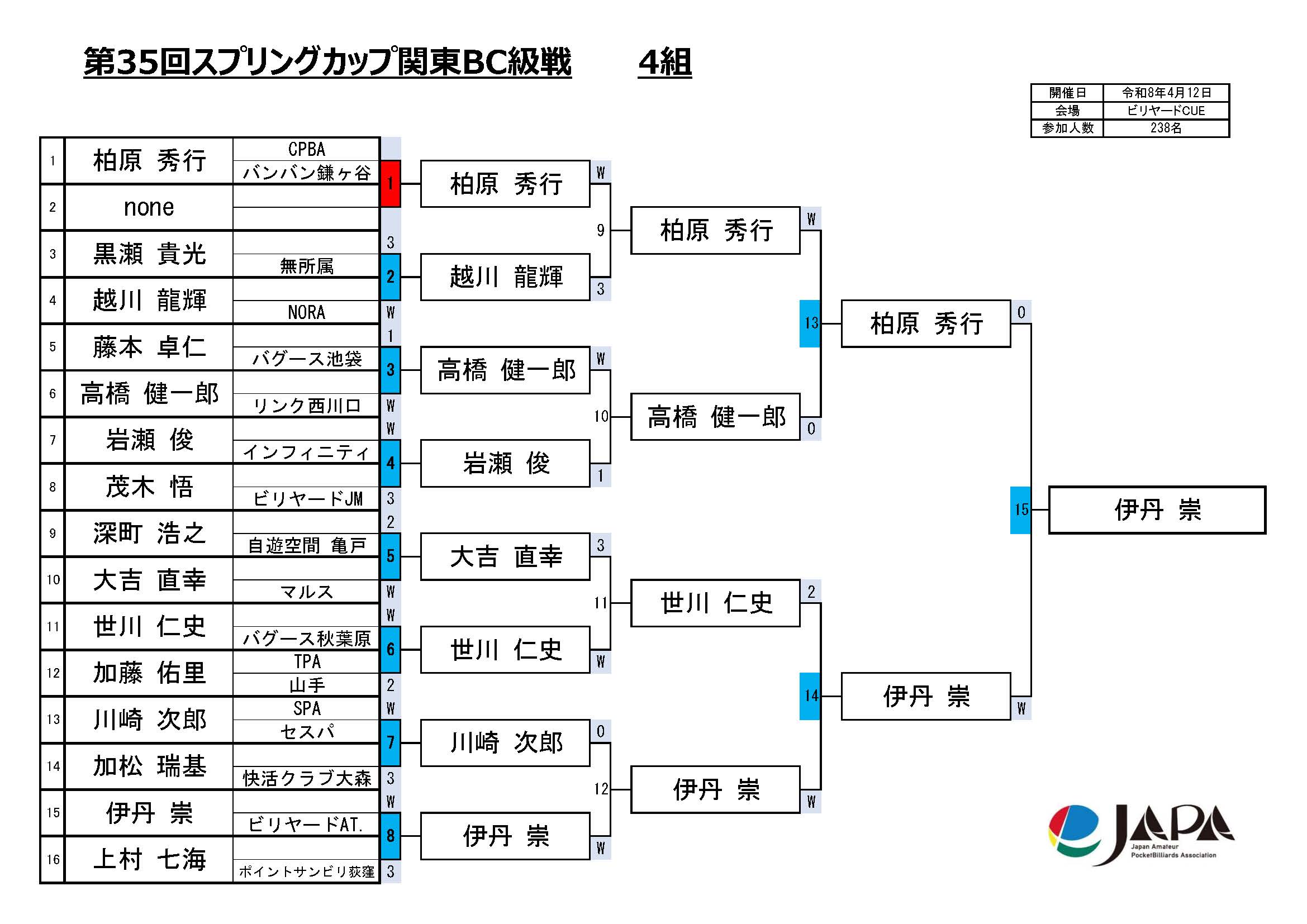 試合方式:9ボール、4ラック先取り、シングルイリミネーション