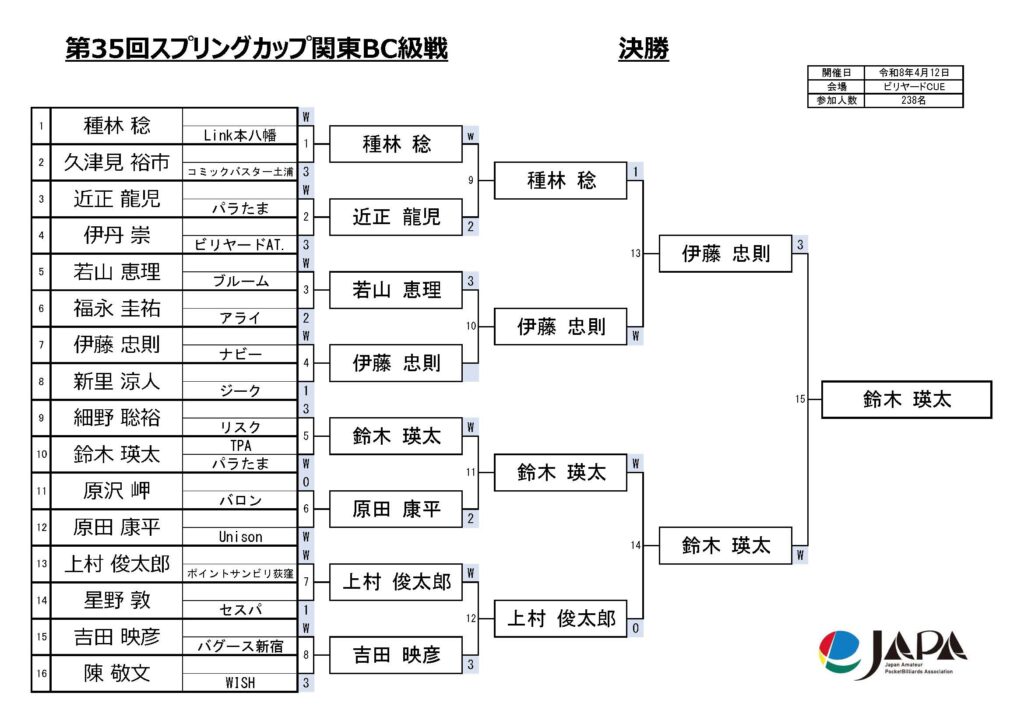 第35回 スプリングカップ 関東BC級、優勝は、鈴木 瑛太!
