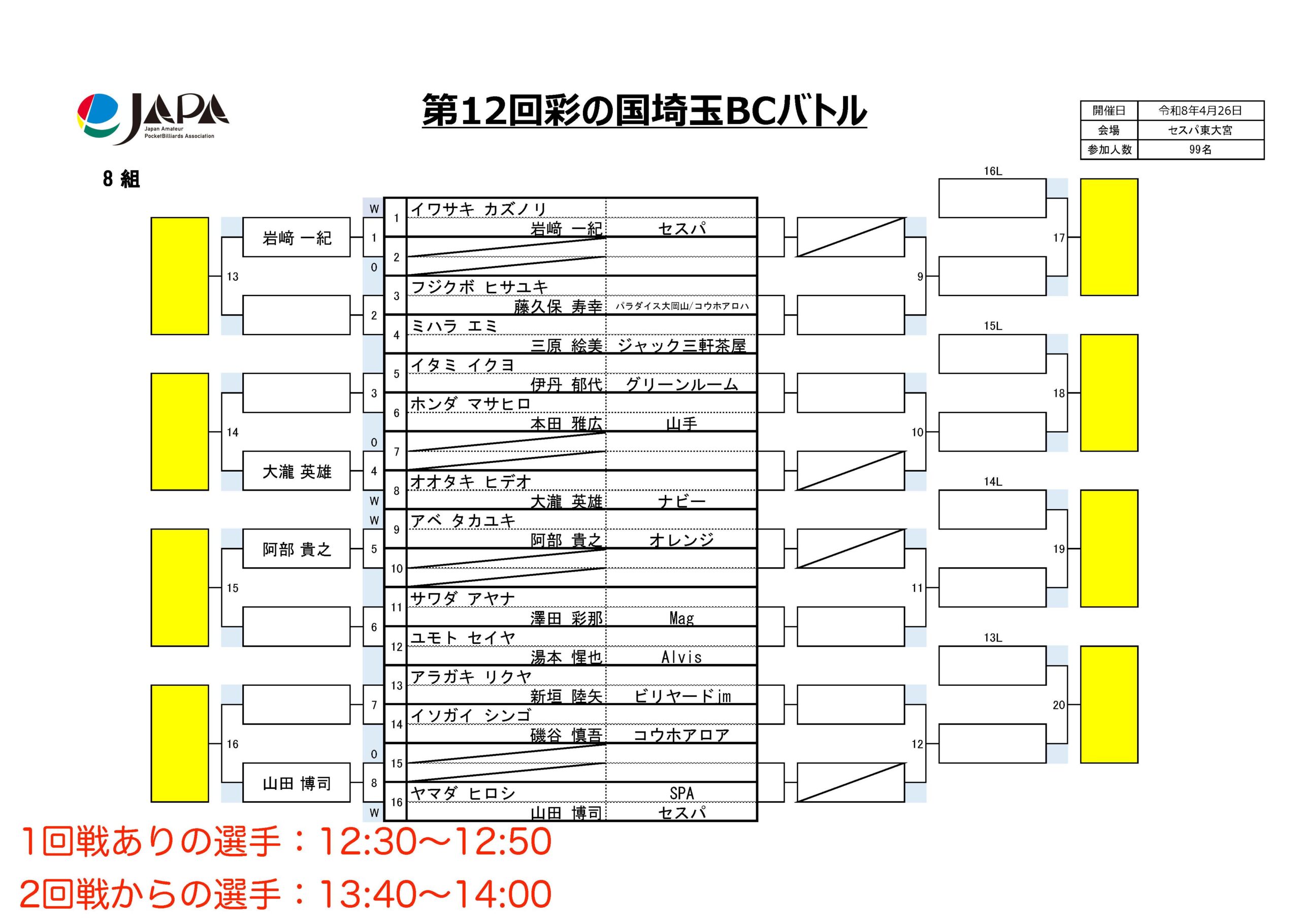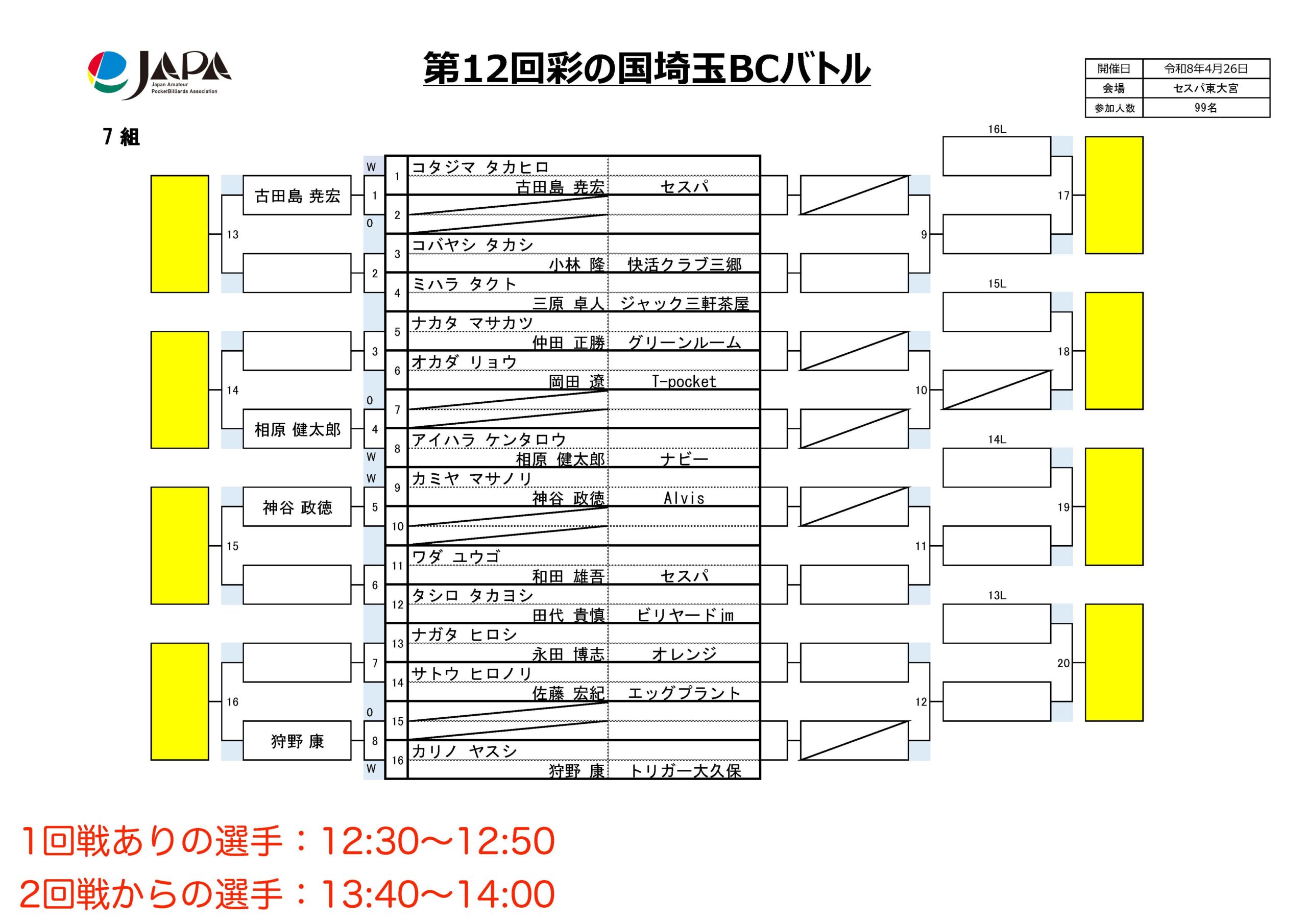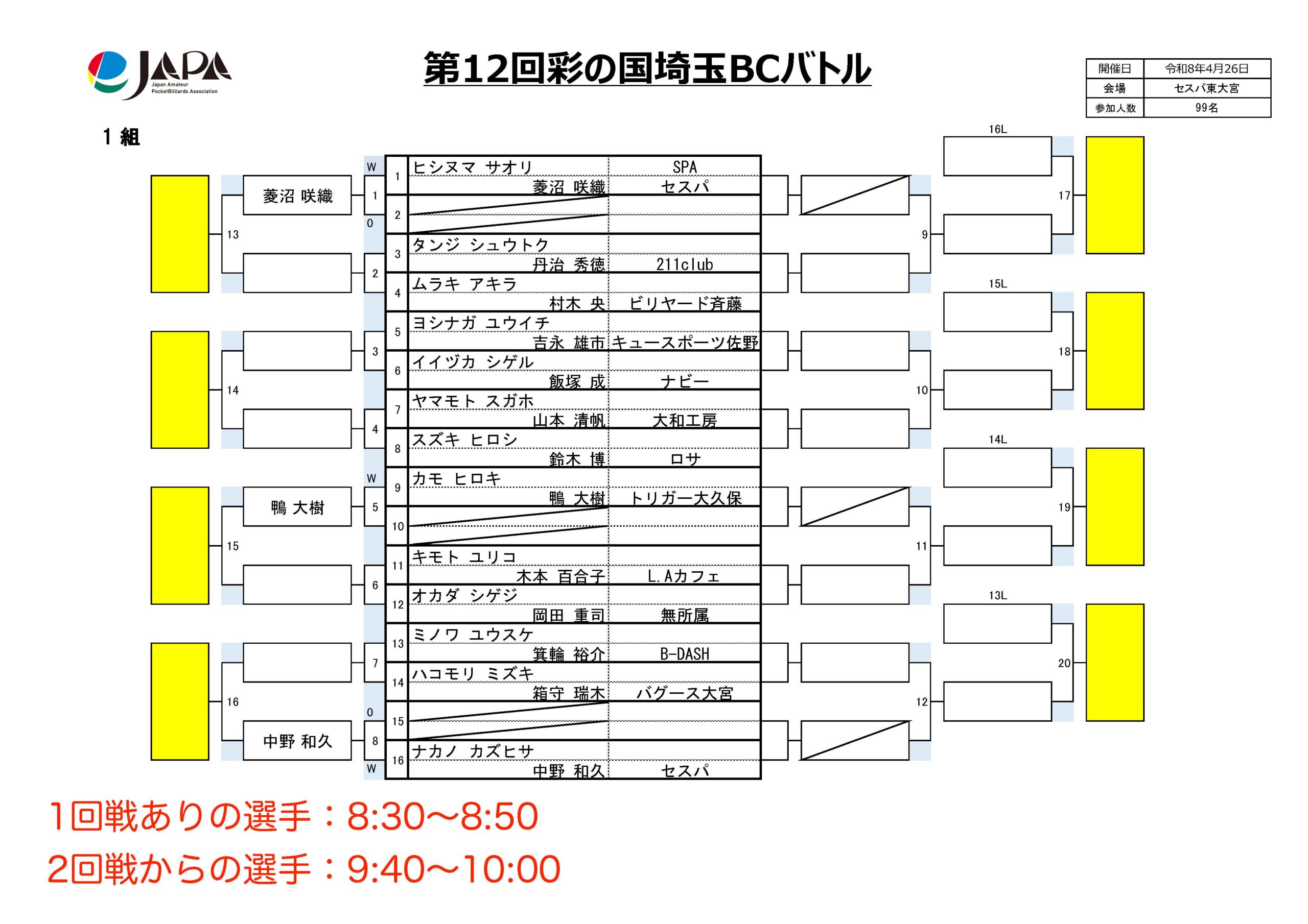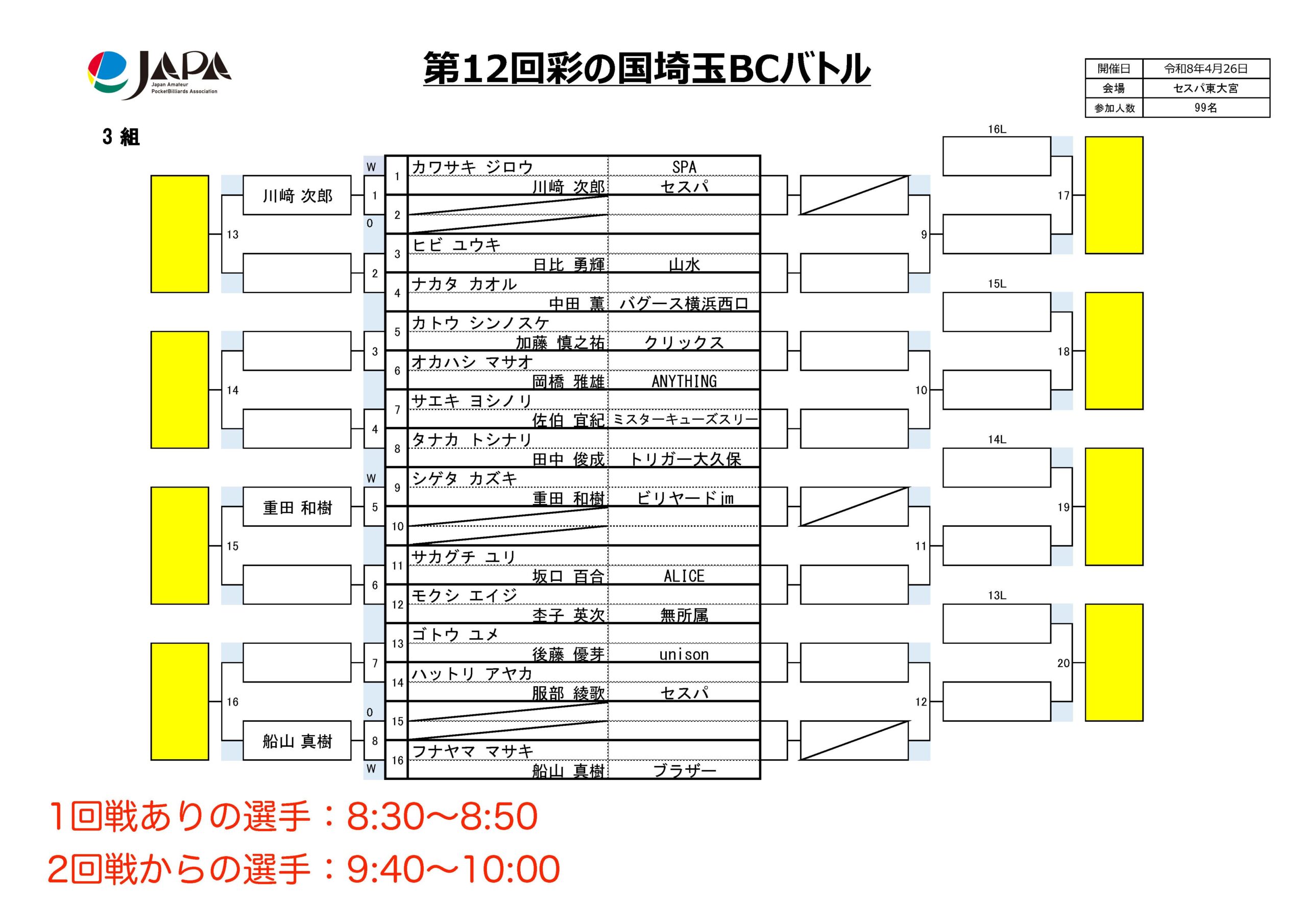 第12回 彩の国埼玉BCバトル、組合せと受付時間