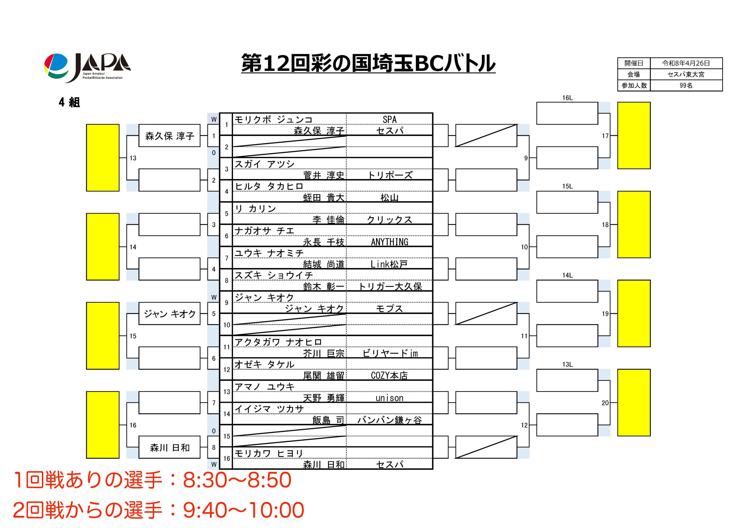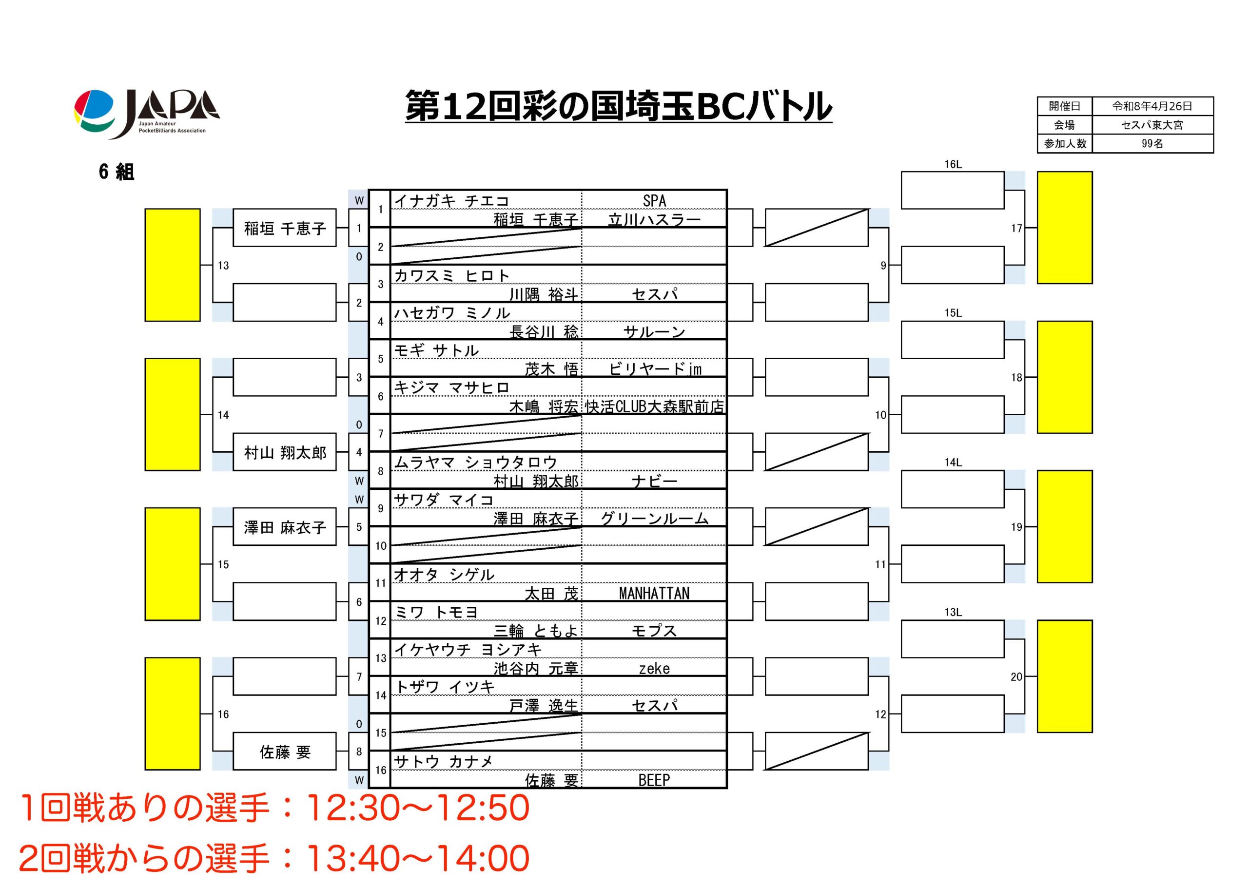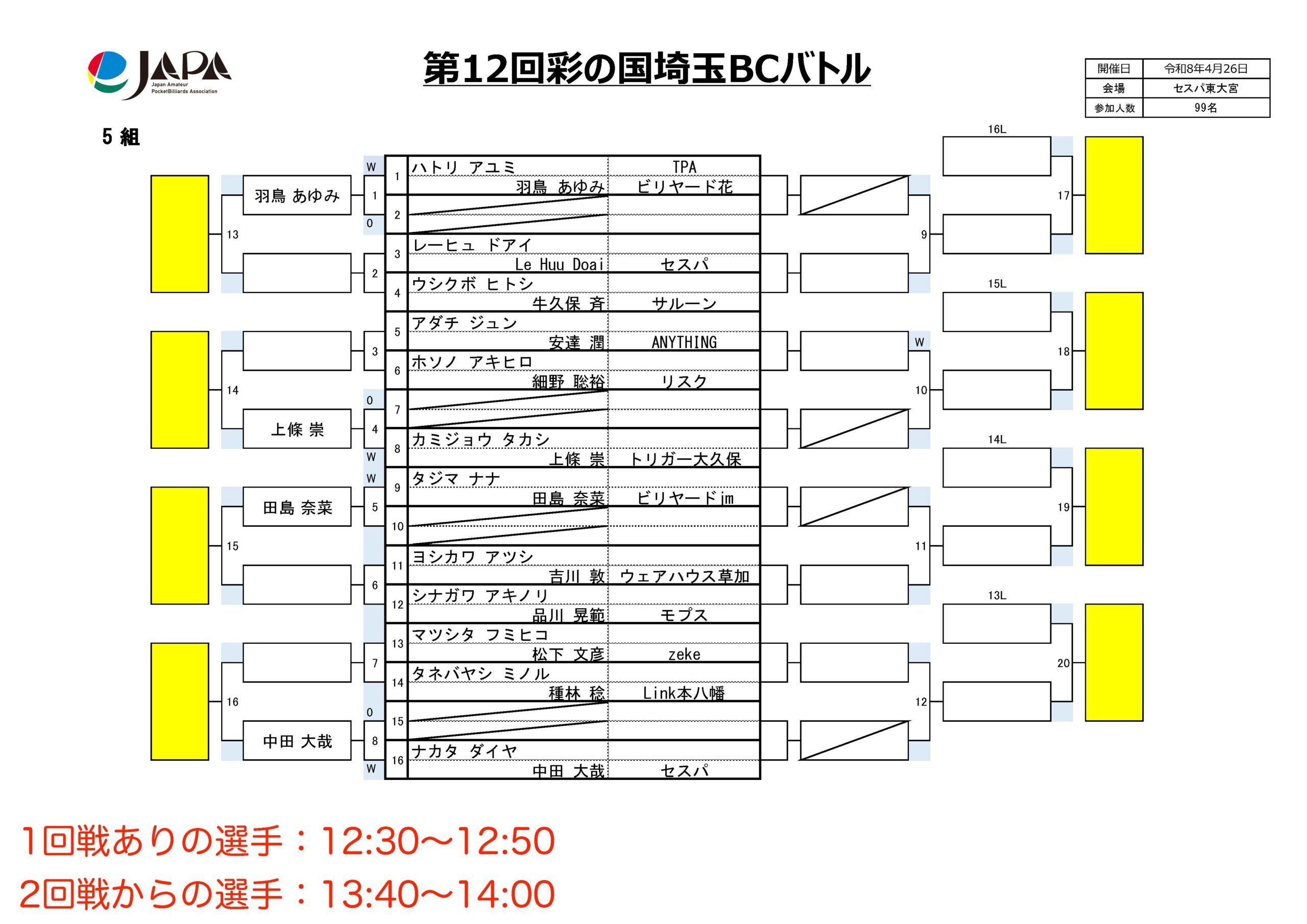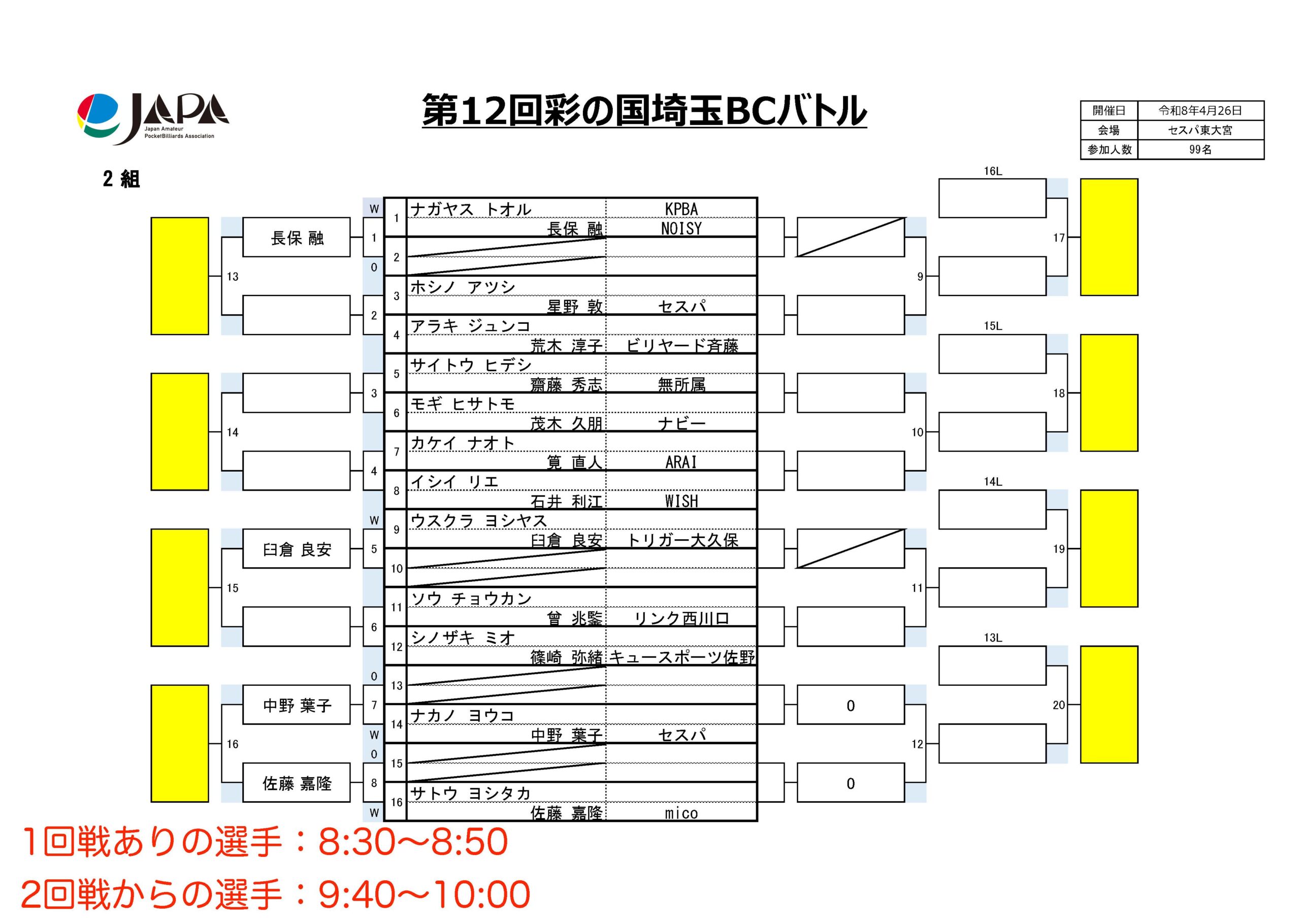 第12回 彩の国埼玉BCバトル、組合せと受付時間